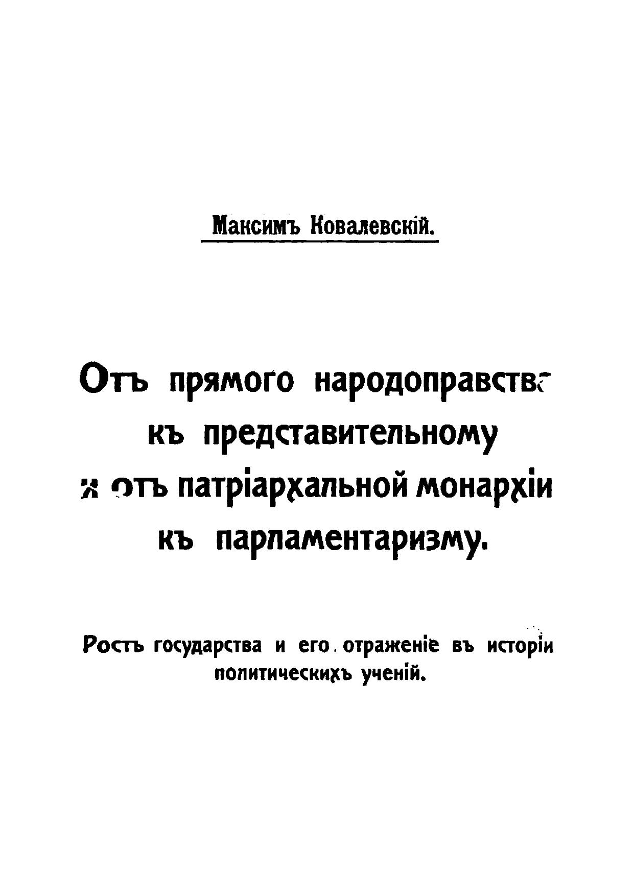 От прямого народоправства к представительному и от патриархальной монархии к парламентаризму. Том 1