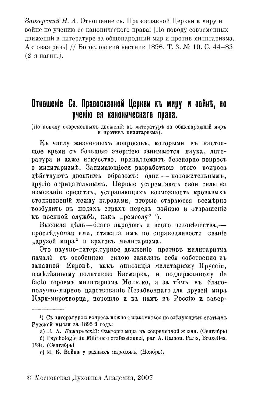 Отношение св. православной церкви к миру и войне по учению ее канонического права