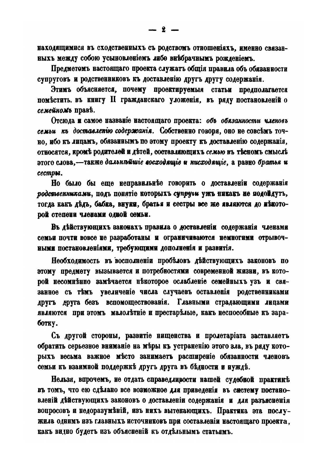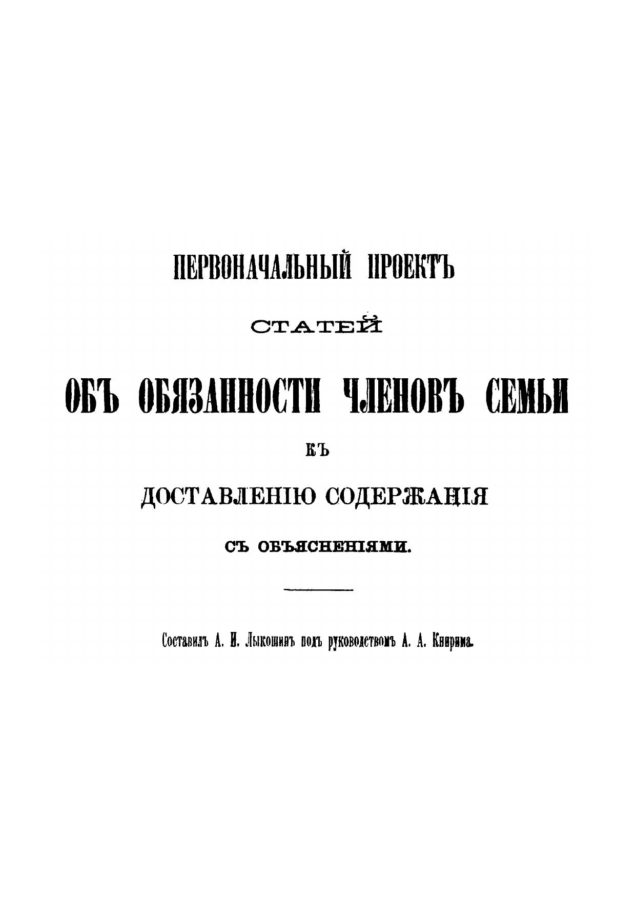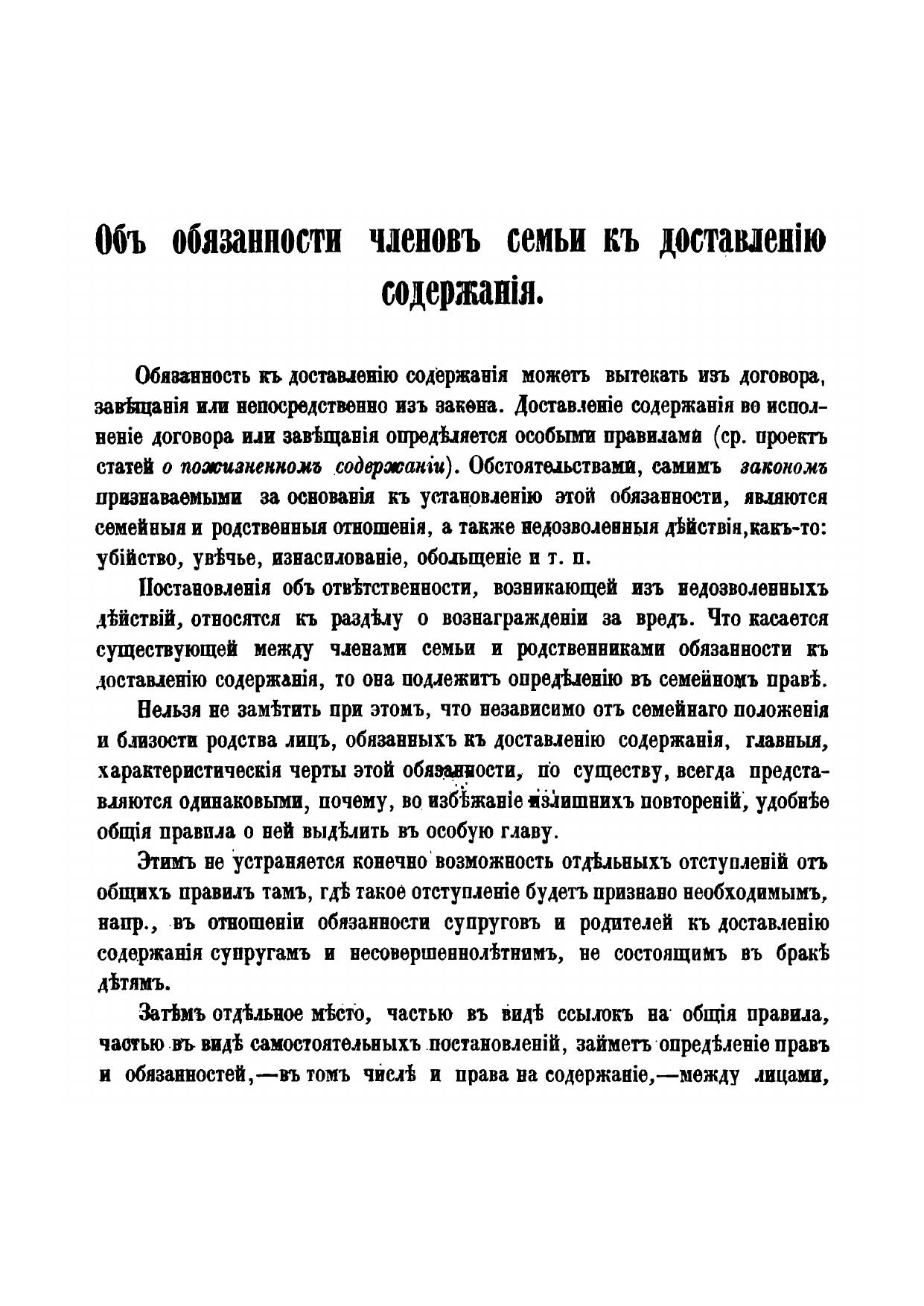 Первоначальный проект статей об обязанности членов семьи к доставлению содержания с объяснениями