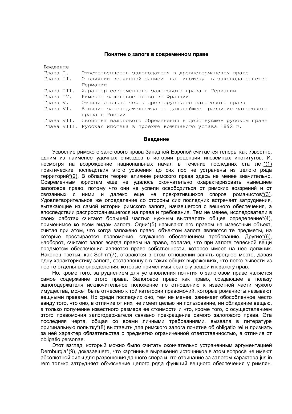 Понятие о залоге в современном праве