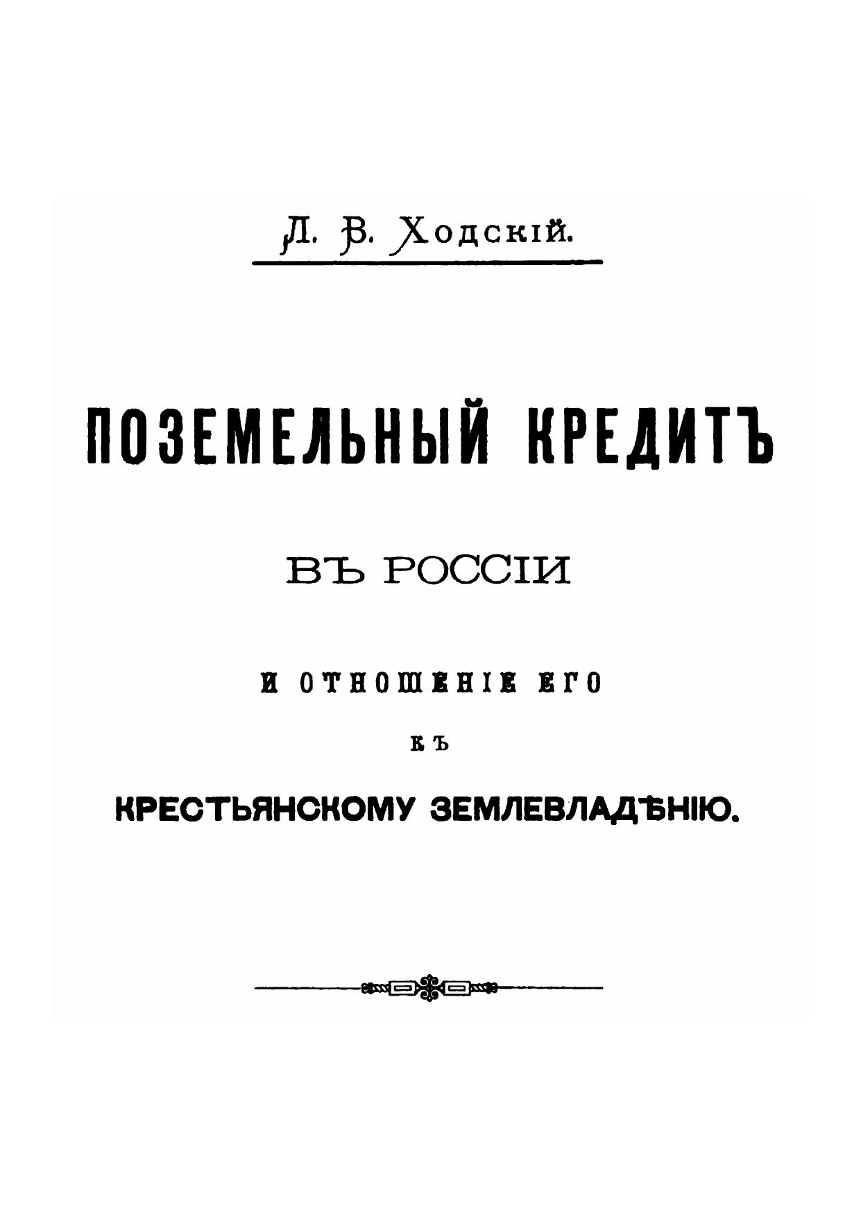 Поземельный кредит в России и отношение его к крестьянскому землевладению