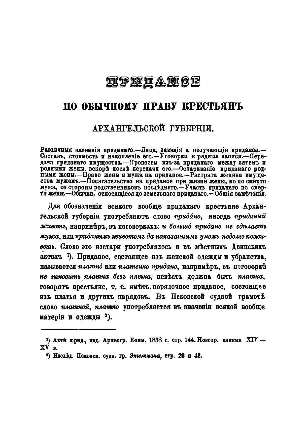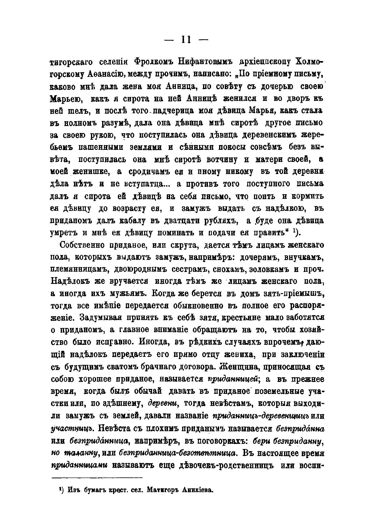 Приданое по обычному праву крестьян Архангельской губернии