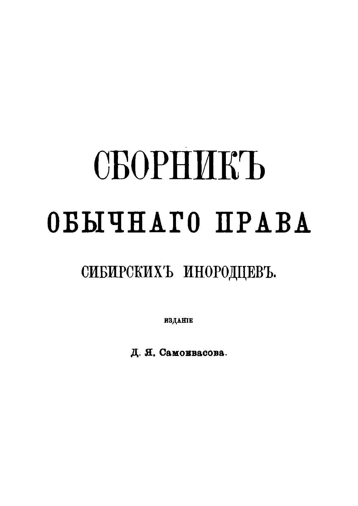 Сборник обычного права сибирских инородцев