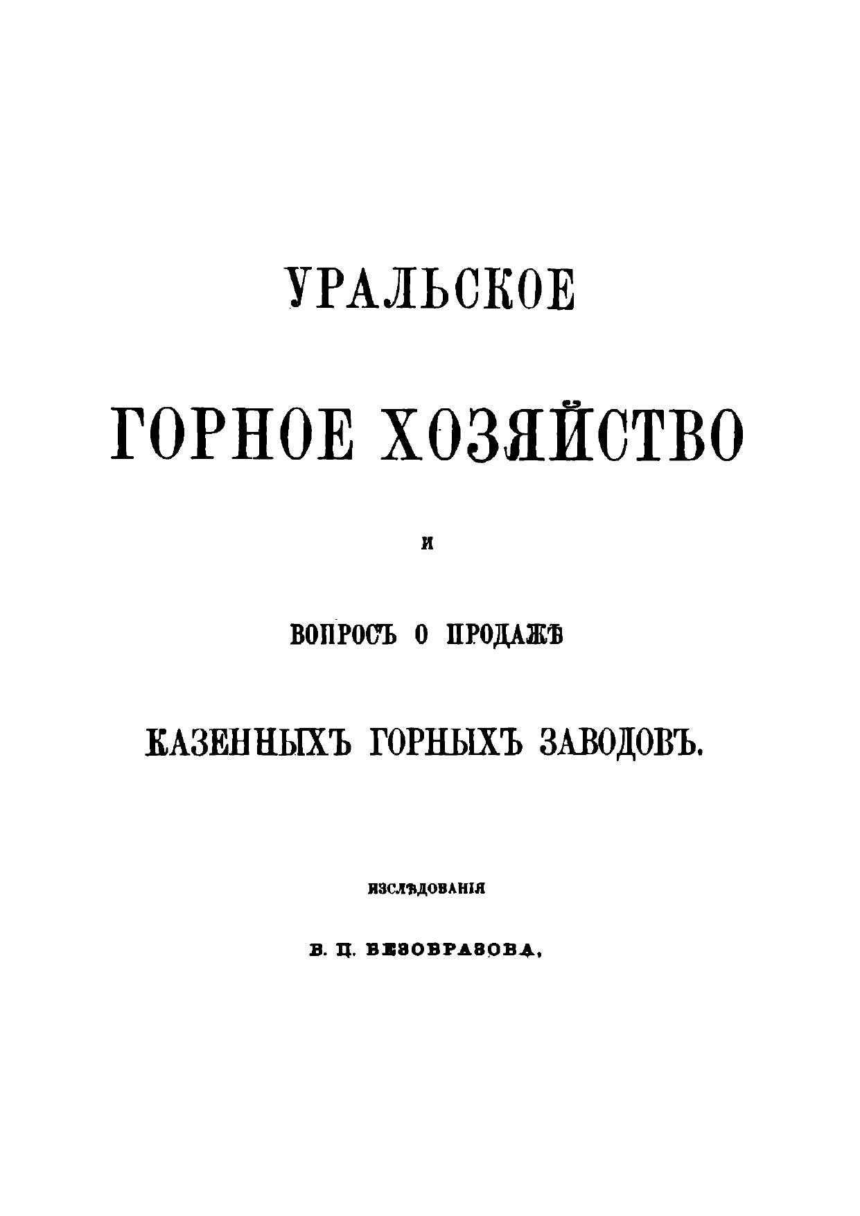 Уральское горное хозяйство и вопрос о продаже казенных горных заводов