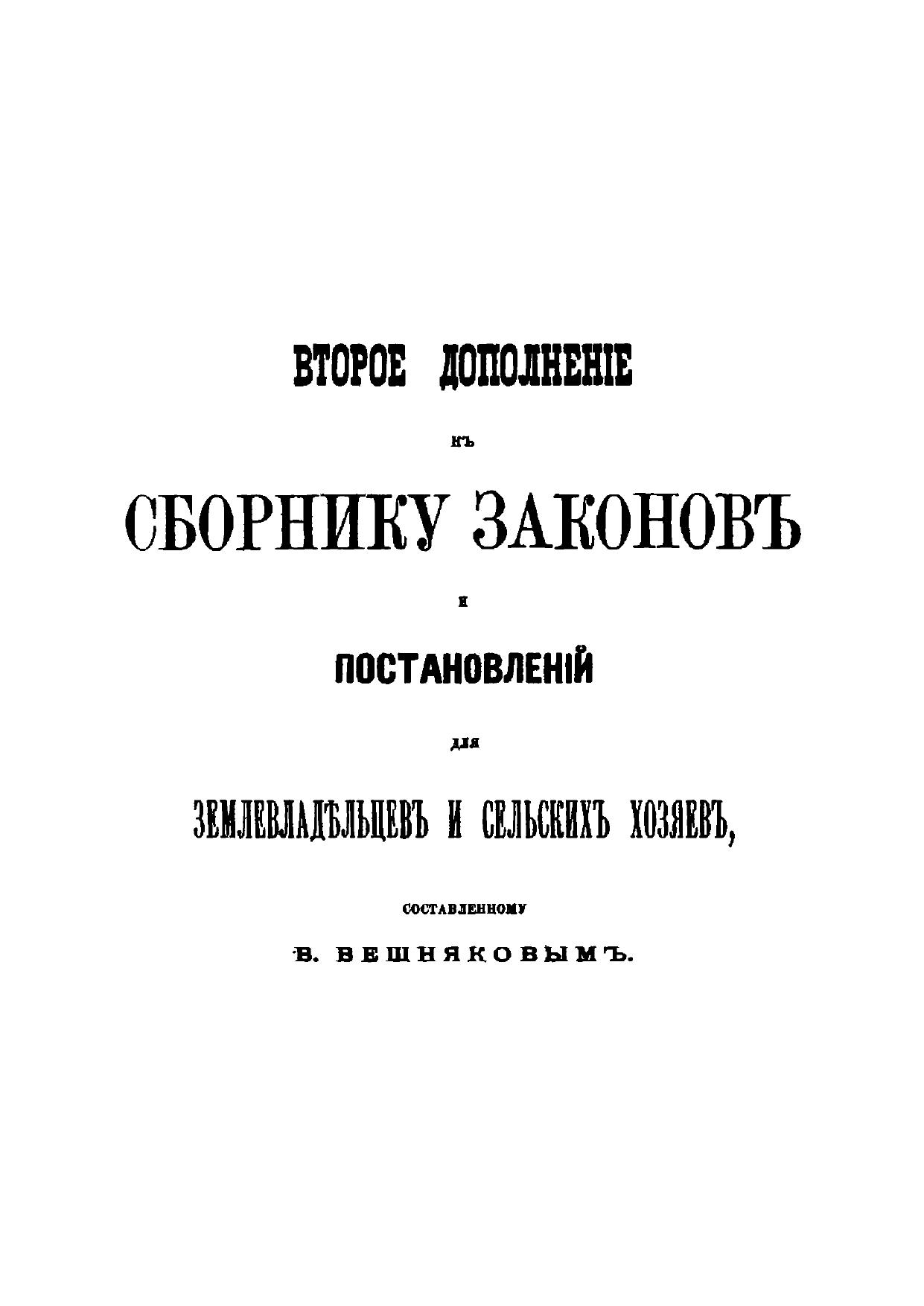 Второе дополнение к сборнику законовов и постановлений для землевладельцев и сельских хозяев
