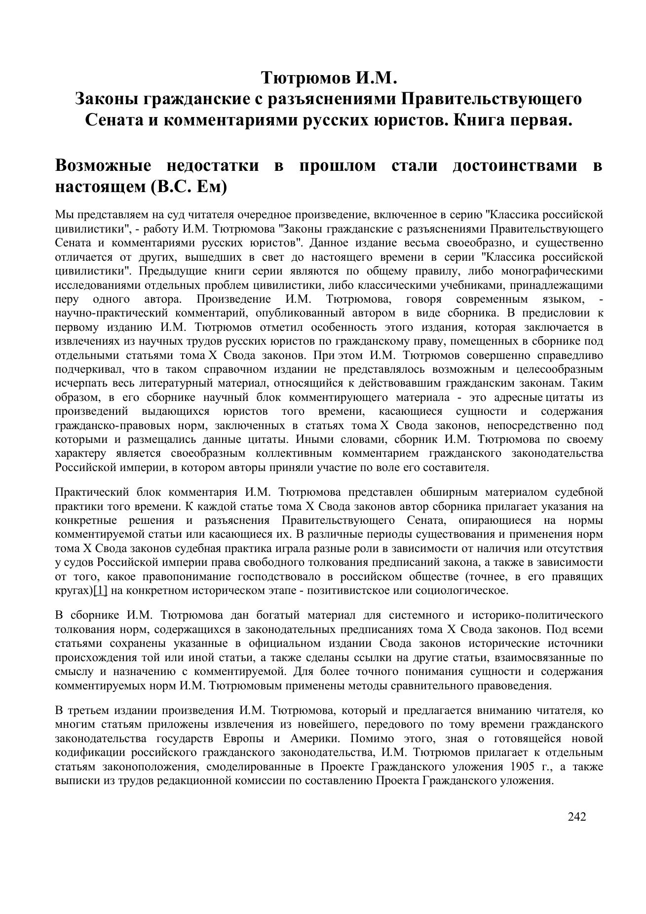 Законы гражданские с разъяснениями Правительствующего Сената и комментариями русских юристов. Книга первая