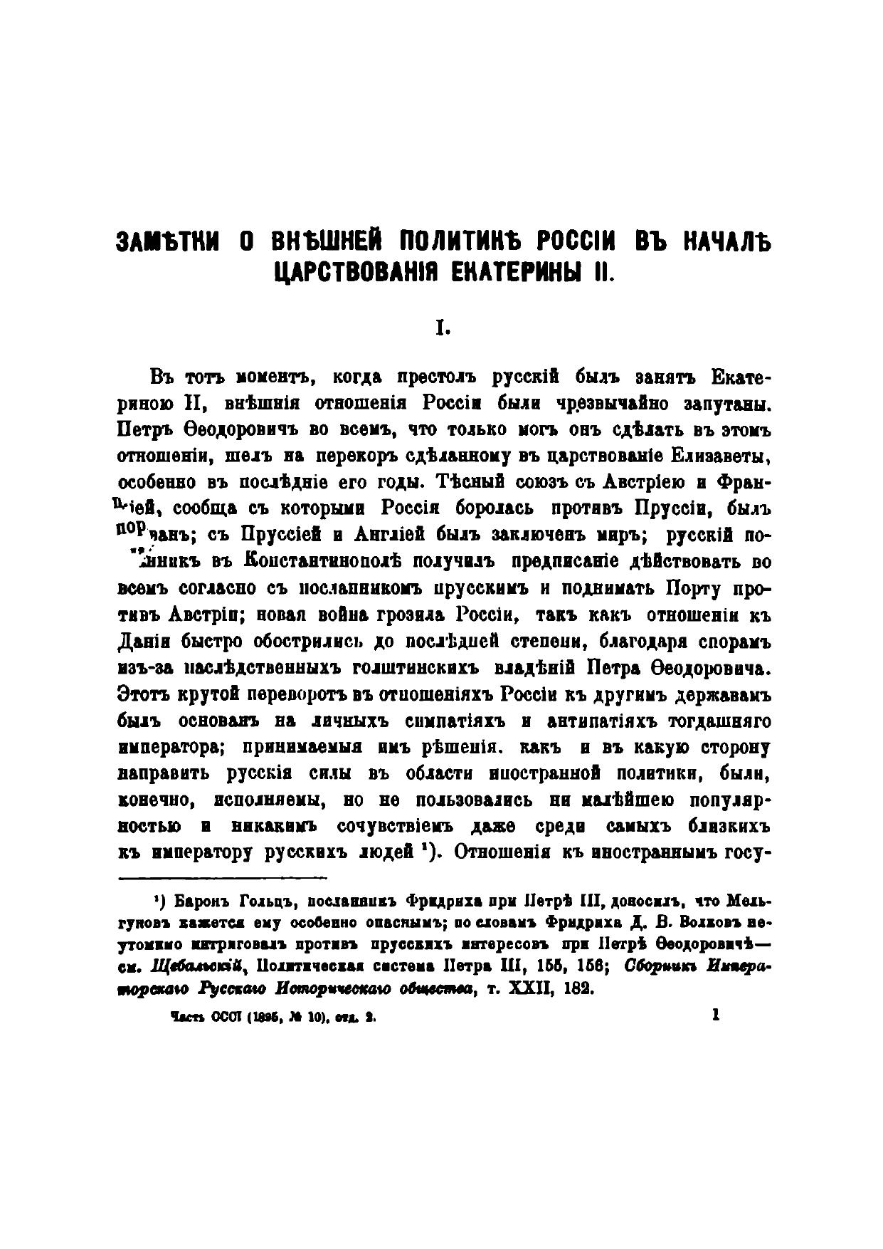 Заметки о внешней политике России в начале царствования Екатерины II