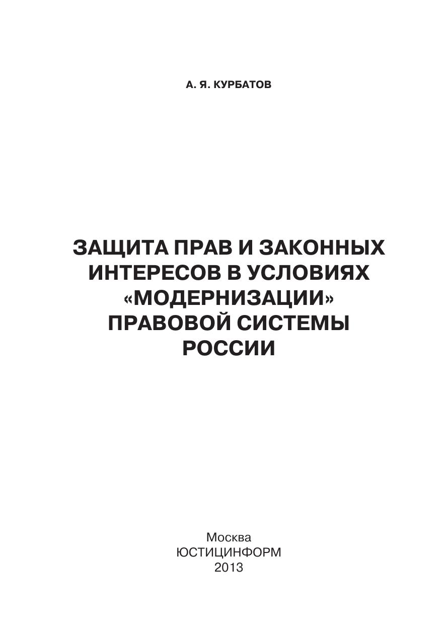 Защита прав и законных интересов в условиях модернизации правовой системы россии