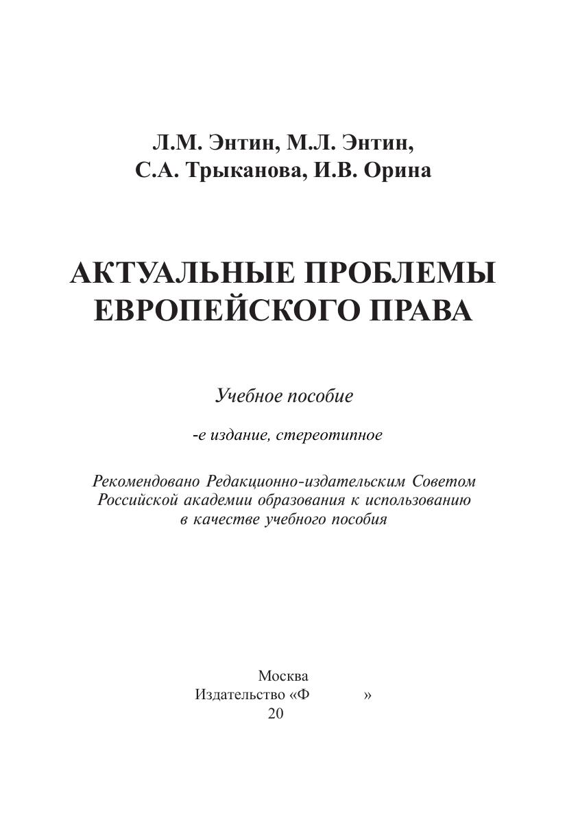 Актуальные проблемы европейского права