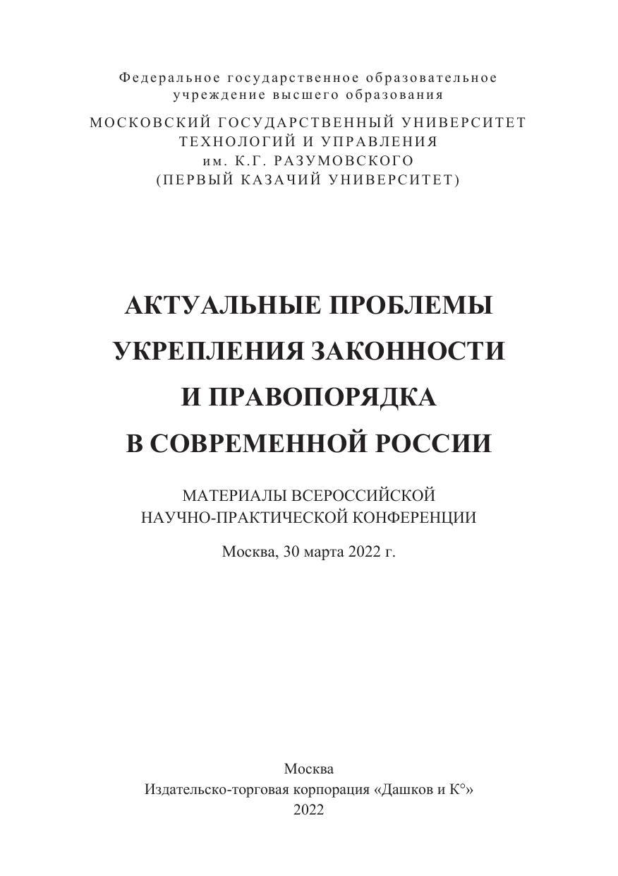 Актуальные проблемы укрепления законности и правопорядка в современной России: Материалы Всероссийской научно-практической конференции 30 марта 2022г.