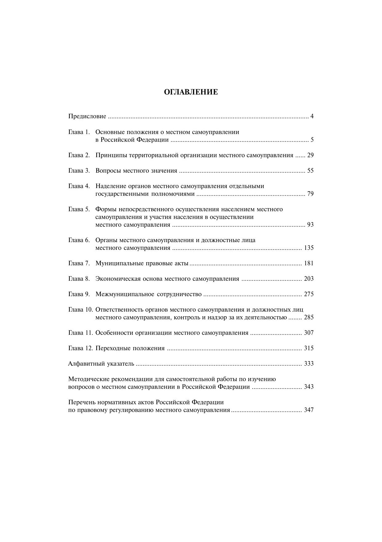 Пособие ставит своей целью привести в определенную систему знания о местном самоуправлении в Российской Федерации для того, чтобы было легче и удобнее изучать и усваивать сложные вопросы теории муниципального управления, реально представлять для себя результаты практической деятельности органов государственной власти, органов и должностных лиц муниципальных образований в сфере важнейшей части публичной власти – местного самоуправления.