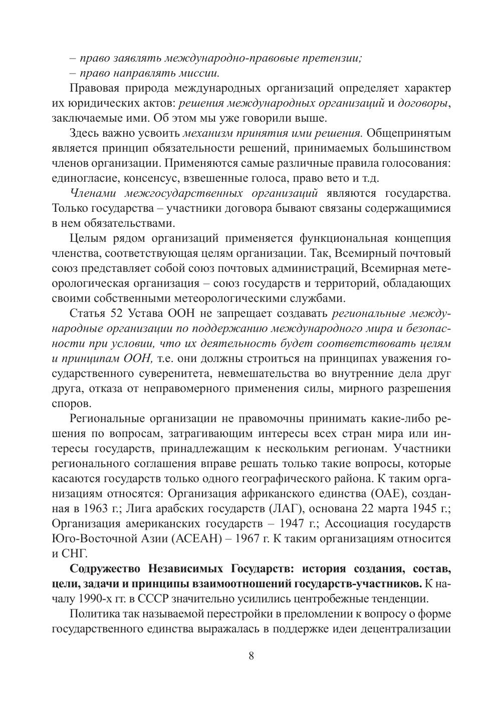 В учебном пособии представлены материалы, позволяющие сконцентрировать внимание студентов на основных положениях теории международных организаций, межгосударственных документов, практике сотрудничества государств СНГ. Особое
