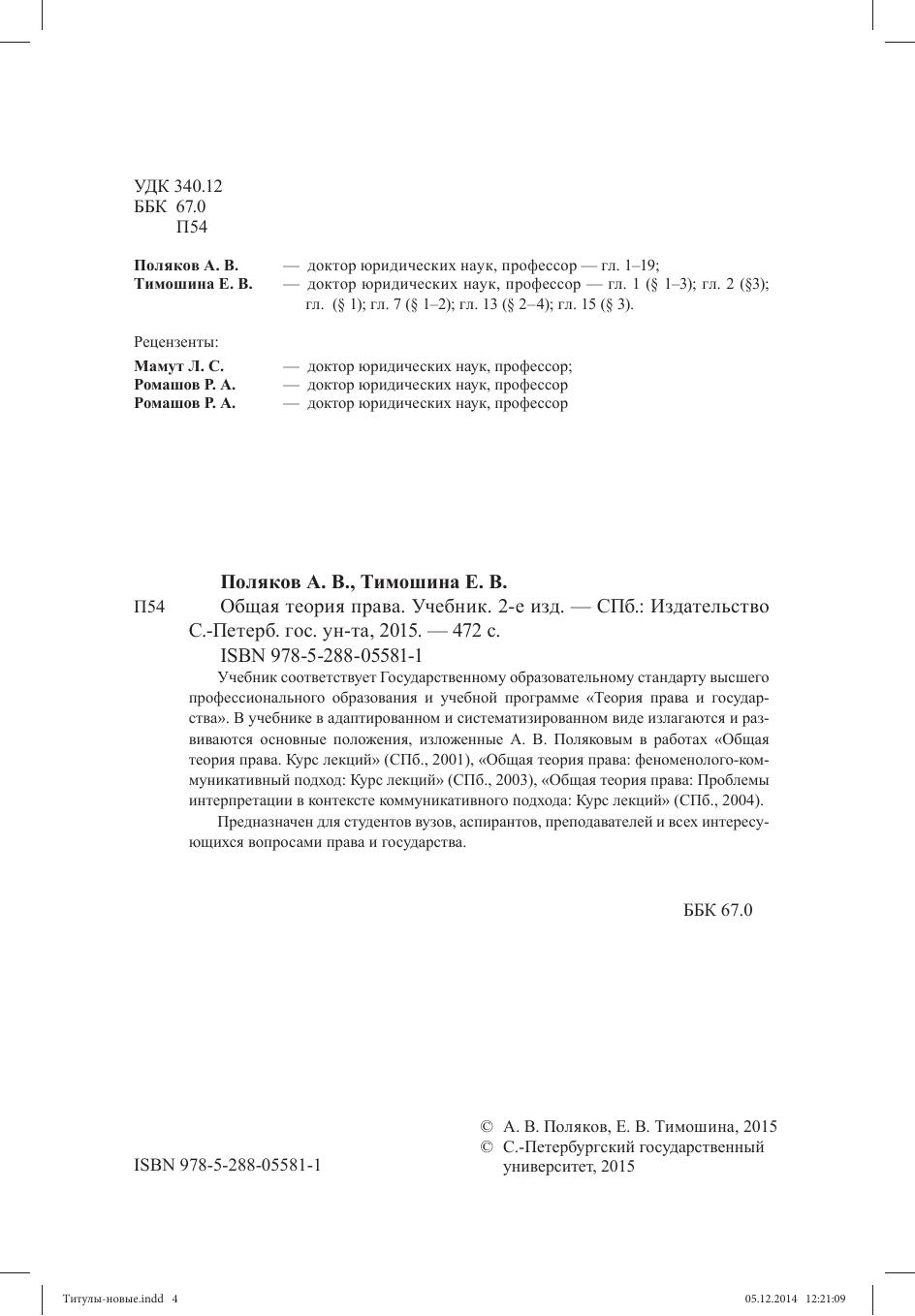 Учебник соответствует Государственному образовательному стандарту высшего профессионального образования и учебной программе «Теория права и государства». В учебнике в адаптированном и систематизированном виде излагаются и развиваются основные положения, изложенные А. В. Поляковым в работах «Общая теория права. Курс лекций» (СПб., 2001), «Общая теория права: феноменолого-коммуникативный подход: Курс лекций» (СПб., 2003), «Общая теория права: Проблемы интерпретации в контексте коммуникативного подхода: Курс лекций» (СПб., 2004). Предназначен для студентов вузов, аспирантов, преподавателей и всех интересующихся вопросами права и государства.