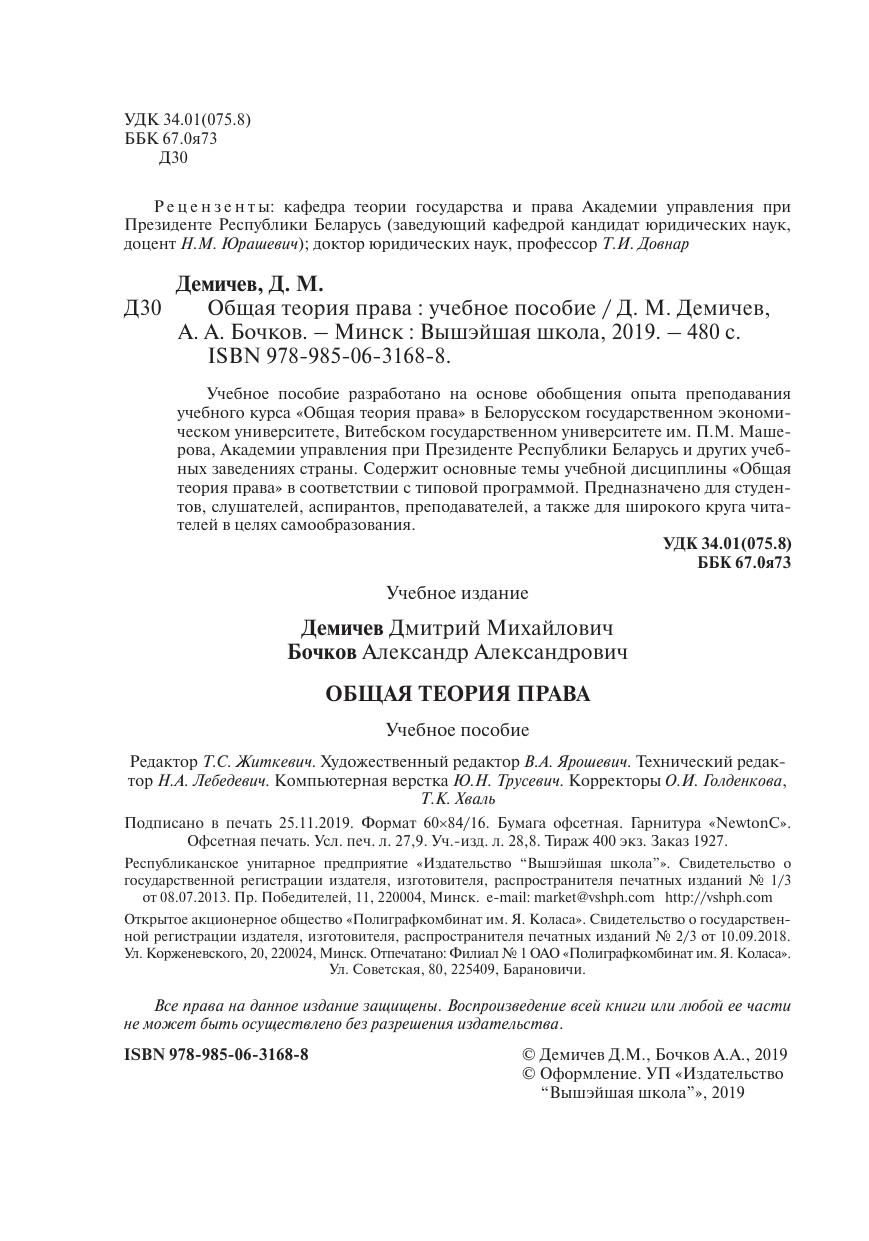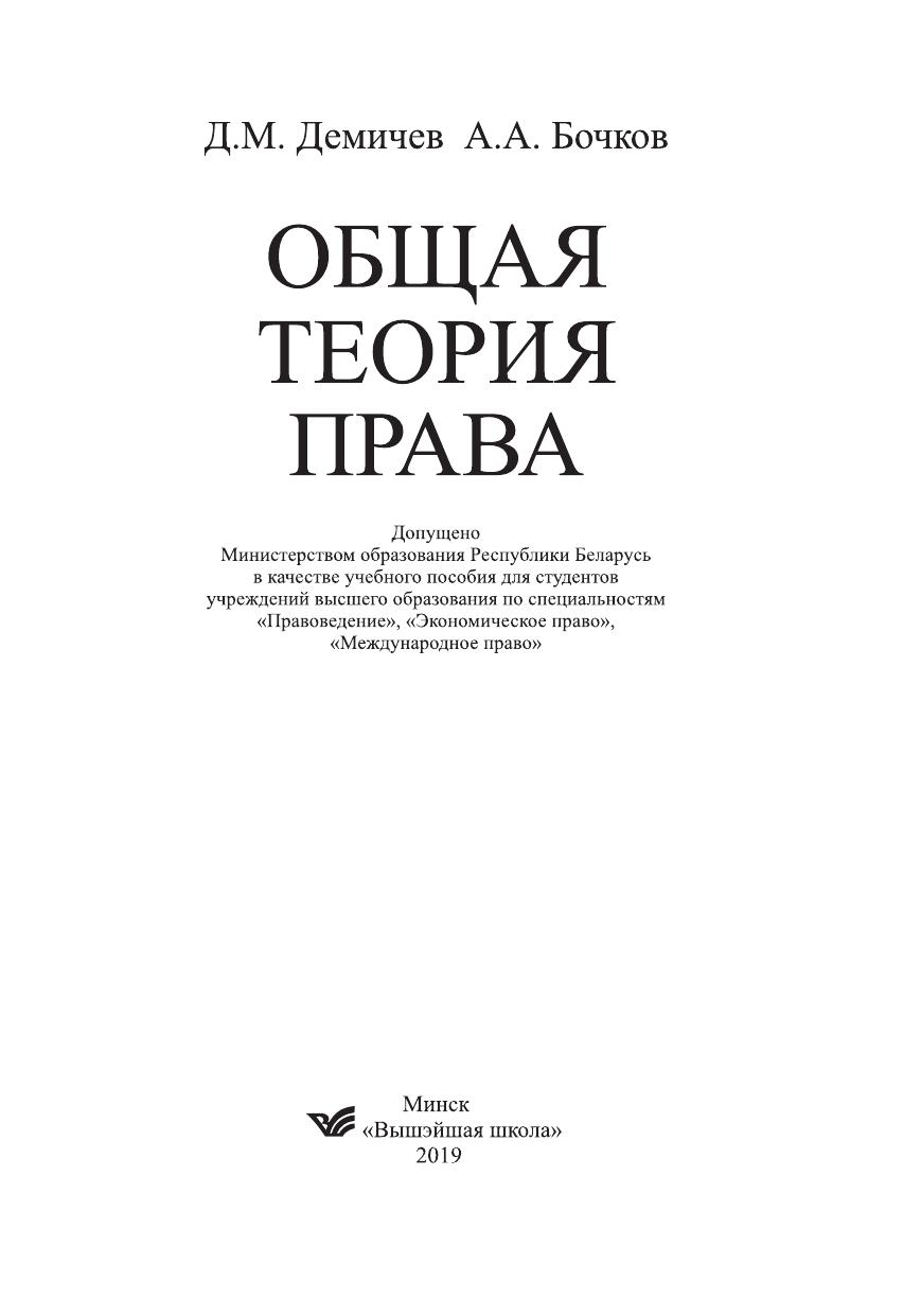 Учебное пособие разработано на основе обобщения опыта преподавания учебного курса «Общая теория права» в Белорусском государственном экономическом университете, Витебском государственном университете им. П.М. Машерова, Академии управления при Президенте Республики Беларусь и других учебных заведениях страны. Содержит основные темы учебной дисциплины «Общая теория права» в соответствии с типовой программой. Предназначено для студентов, слушателей, аспирантов, преподавателей, а также для широкого круга читателей в целях самообразования