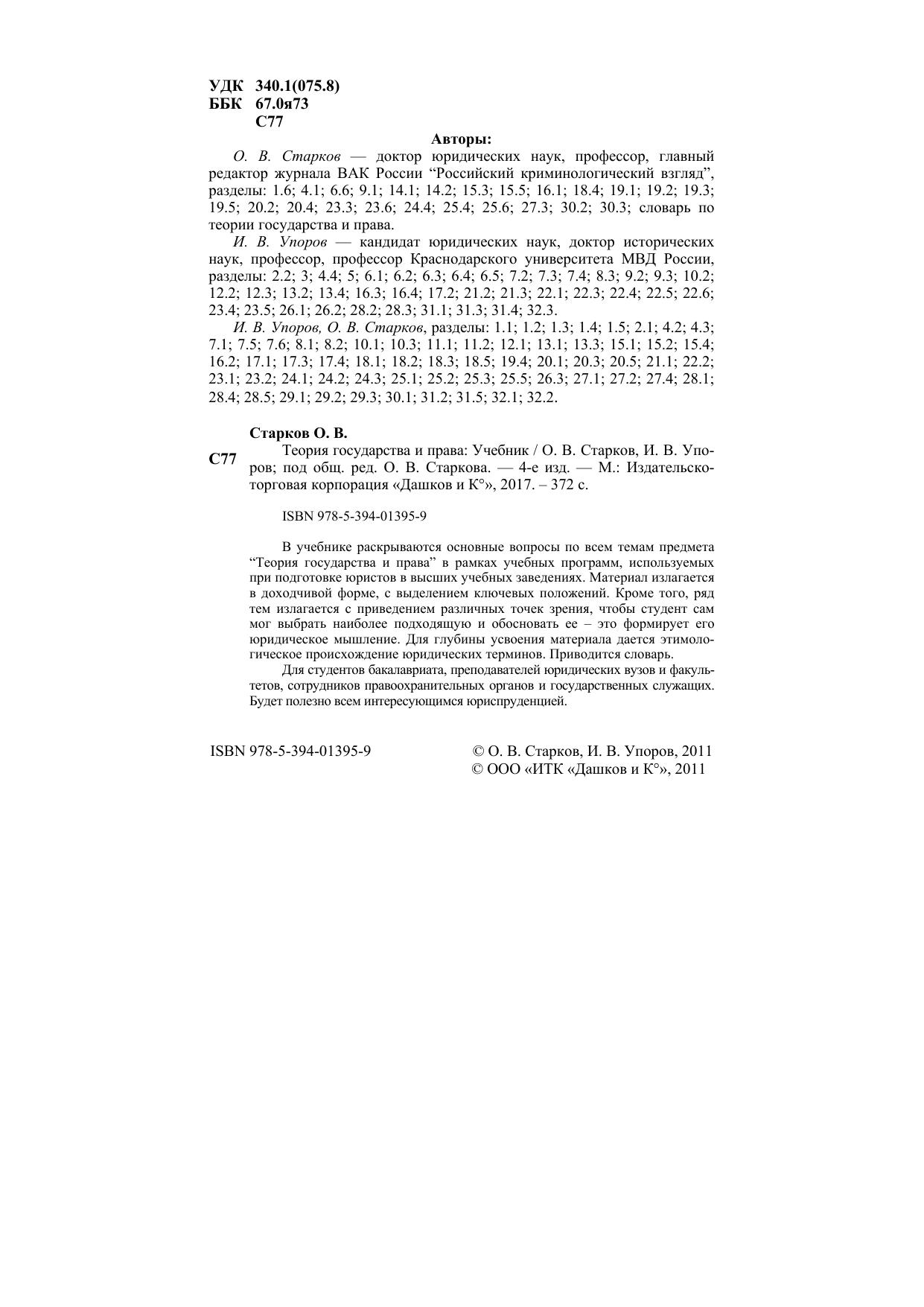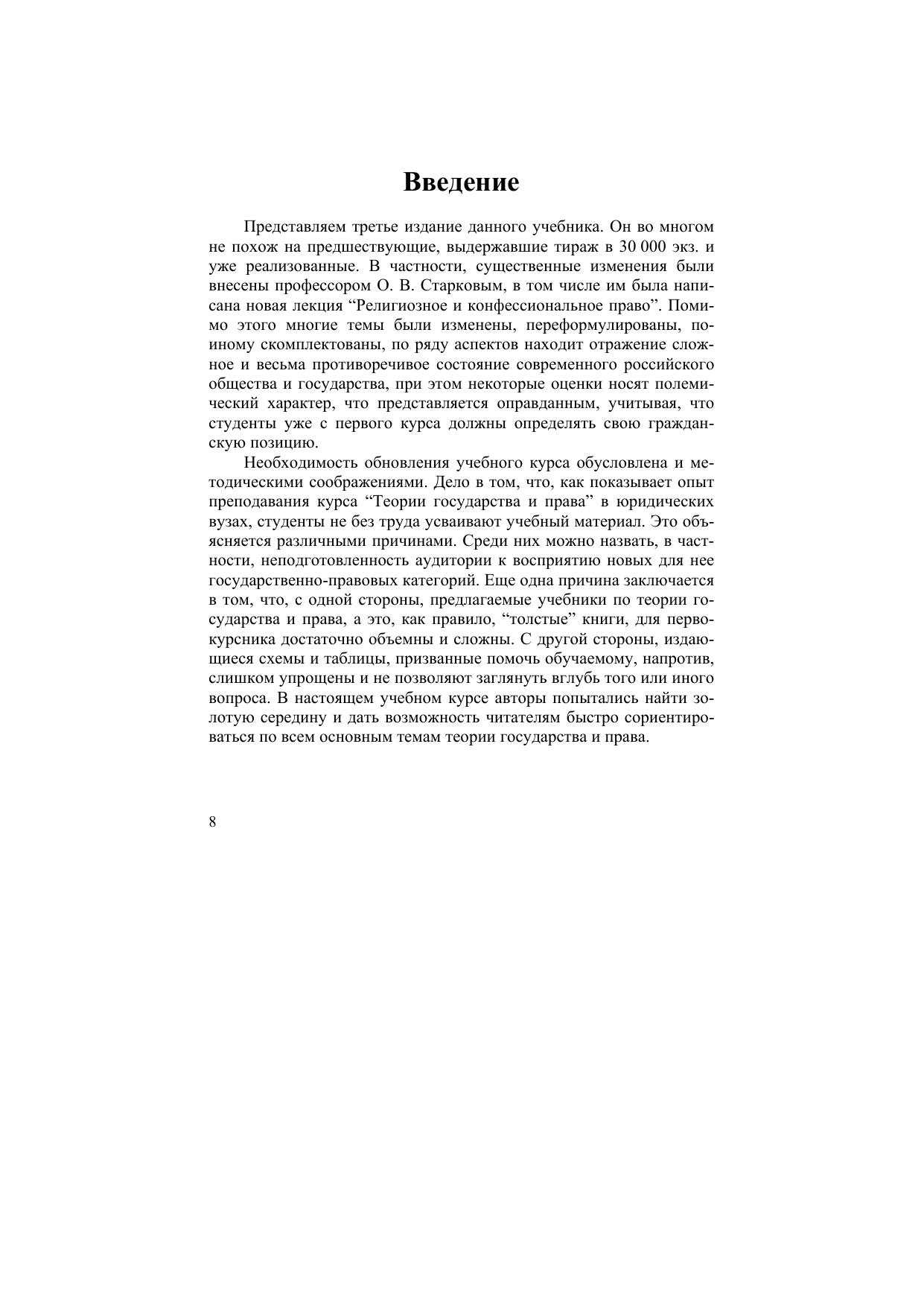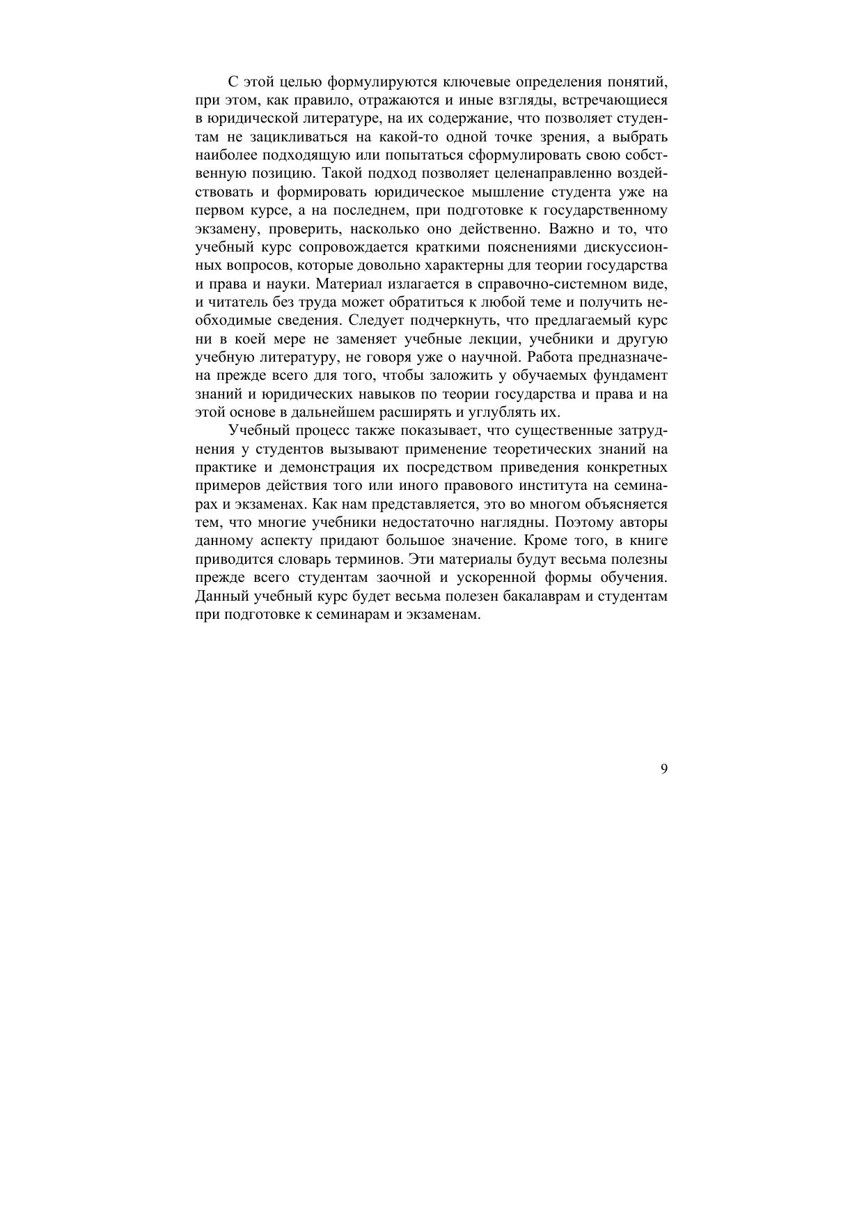 В учебнике раскрываются основные вопросы по всем темам предмета "Теория государства и права" в рамках учебных программ, используемых при подготовке юристов в высших учебных заведениях. Материал излагается в доходчивой форме, с выделением ключевых положений. Кроме того, ряд тем излагается с приведением различных точек зрения, чтобы студент сам мог выбрать наиболее подходящую и обосновать ее, - это формирует его юридическое мышление. Для глубины усвоения материала дается этимологическое происхождение юридических терминов. Приводится словарь.