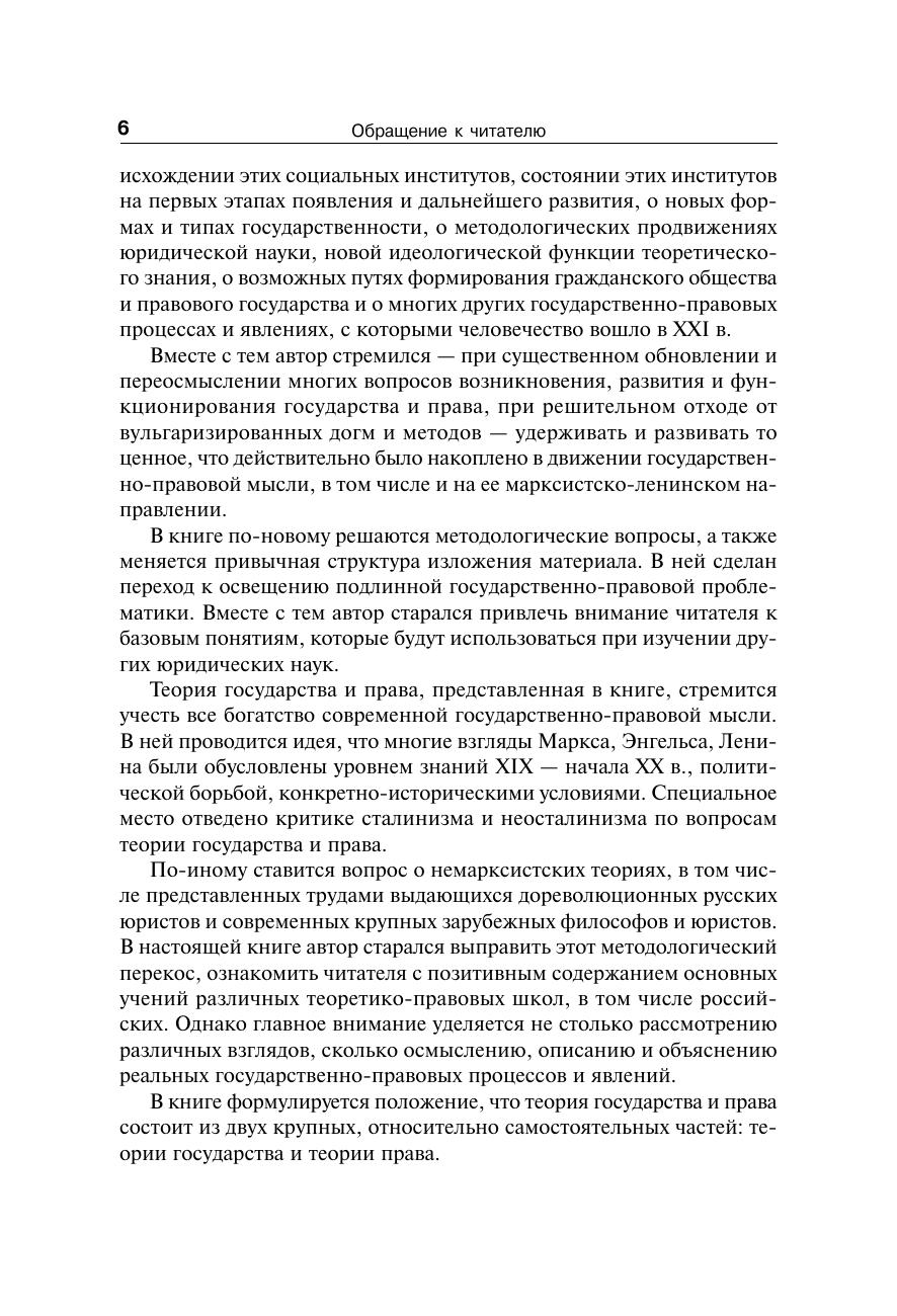 В учебнике, сохраняя все то ценное, что наработано в теоретико-правовой мысли за многие годы, автор переосмысливает вопросы возникновения, развития и функционирования государства и права. В нем на высоком теоретическом уровне анализируются государственно-правовые процессы и явления современного российского общества, дается характеристика гражданского общества в его соотношении с правом и государством. Для студентов бакалавриата и магистратуры, обучающихся по направлениям подготовки «Юриспруденция» и «Государственное и муниципальное управление», а также преподавателей и научных работников.