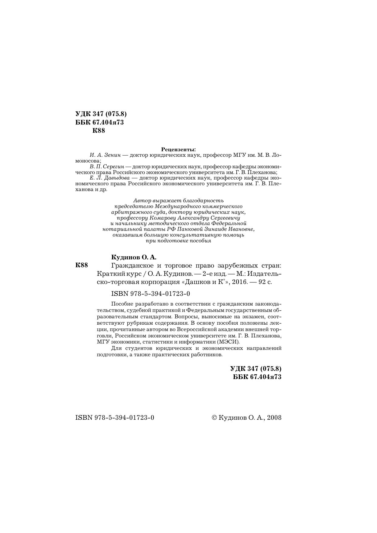 Пособие разработано в соответствии с гражданским законодательством, судебной практикой и Федеральным государственным образовательным стандартом.Вопросы , выносимые на экзамен, соответствуют рубрикам содержания. В основу пособия положены лекции, прочитанные автором во Всероссийской академии внешней торговли, Российском экономическом университете им. Г.В. Плеханова, МГУ экономики, статистики и информатики (МЭСИ).