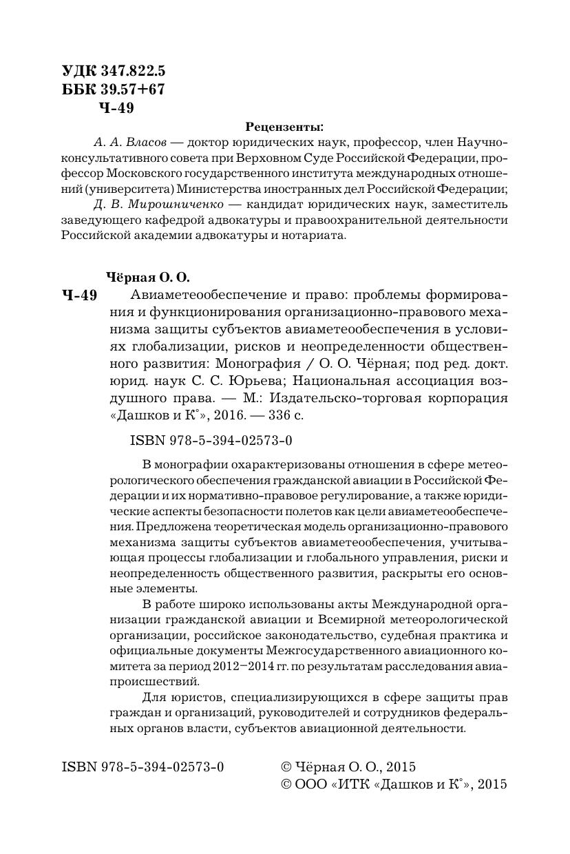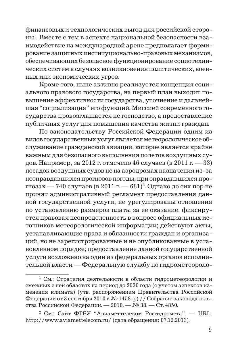 В монографии охарактеризованы отношения в сфере метеорологического обеспечения гражданской авиации в РФ и их нормативно-правовое регулирование, а также юридические аспекты безопасности полетов как цели авиаметеообеспечения. Предложена теоретическая модель организационно-правового механизма защиты субъектов авиаметеообеспечения, учитывающая процессы глобализации и глобального управления, риски и неопределенность общественного развития, раскрыты его основные элементы.