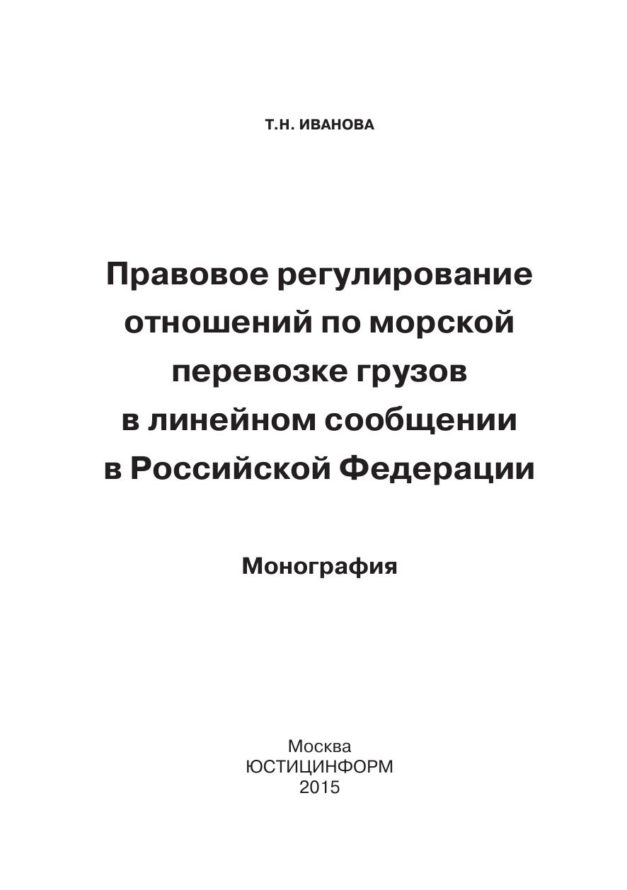 Правовое регулирование отношений по морской перевозке грузов в линейном сообщении в Российской Федерации: монография