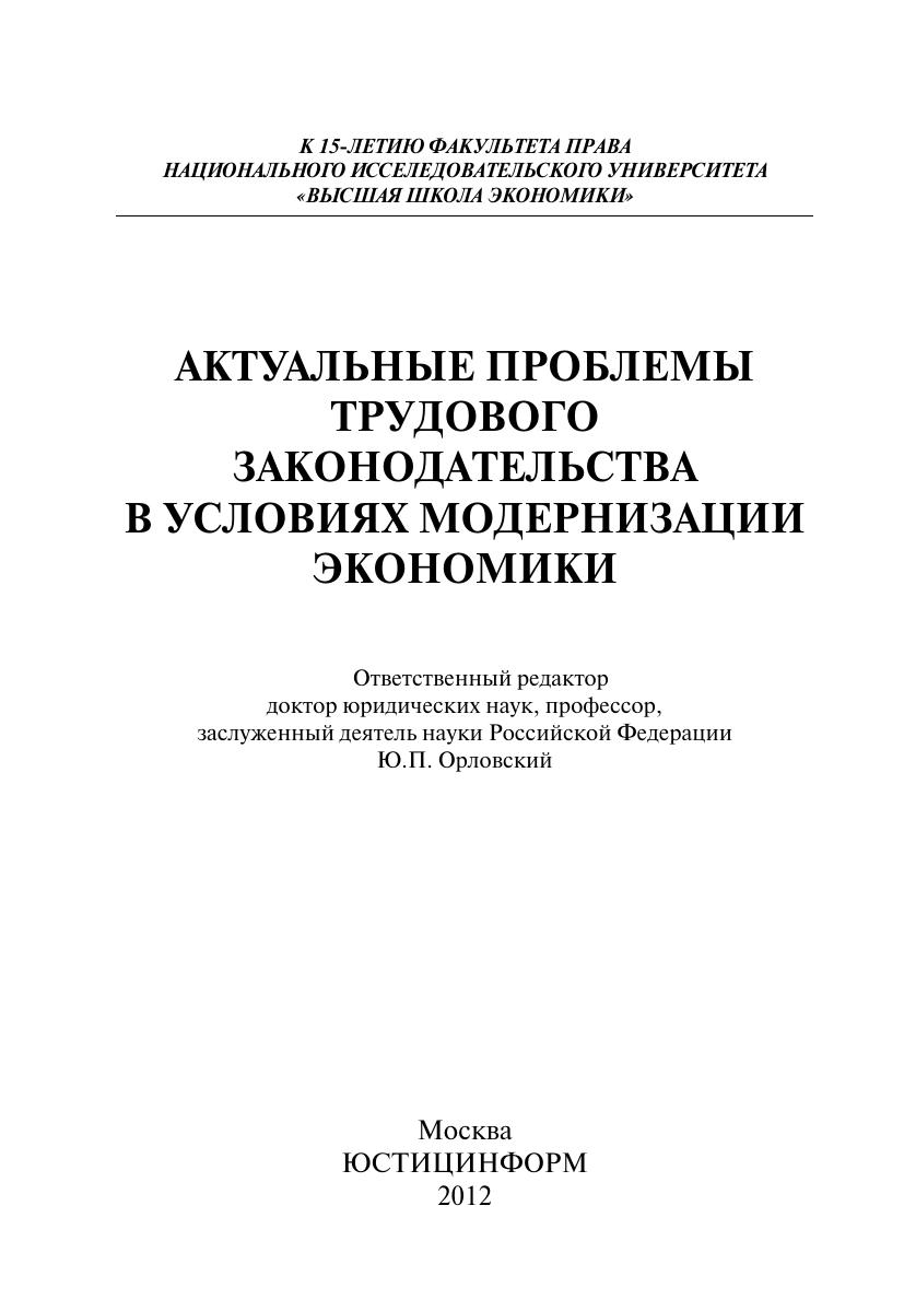 Актуальные проблемы трудового законодательства в условиях модернизации экономики : монография