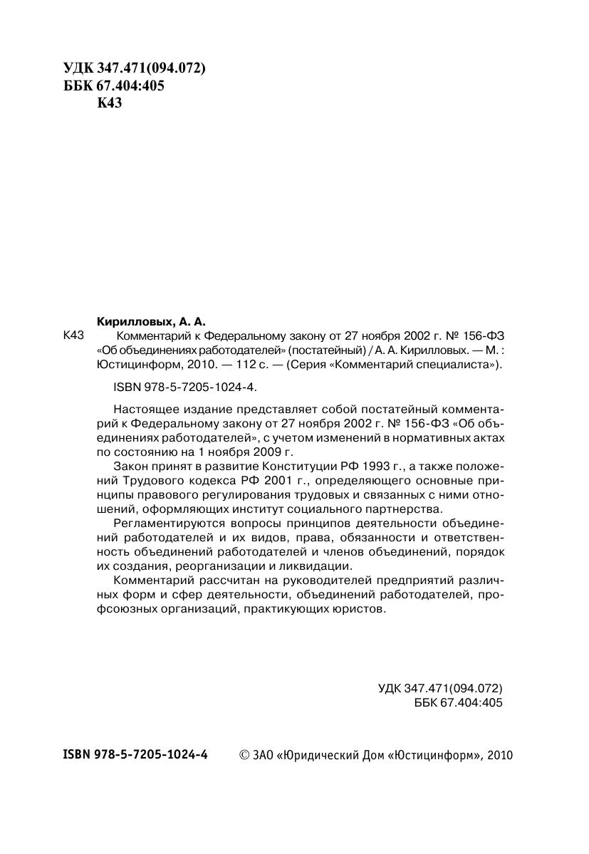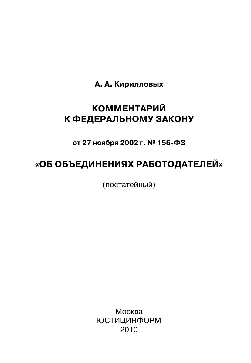 Комментарий к Федеральному закону от 27 ноября 2002 г. № 156-ФЗ «Об объединениях работодателей» (постатейный)
