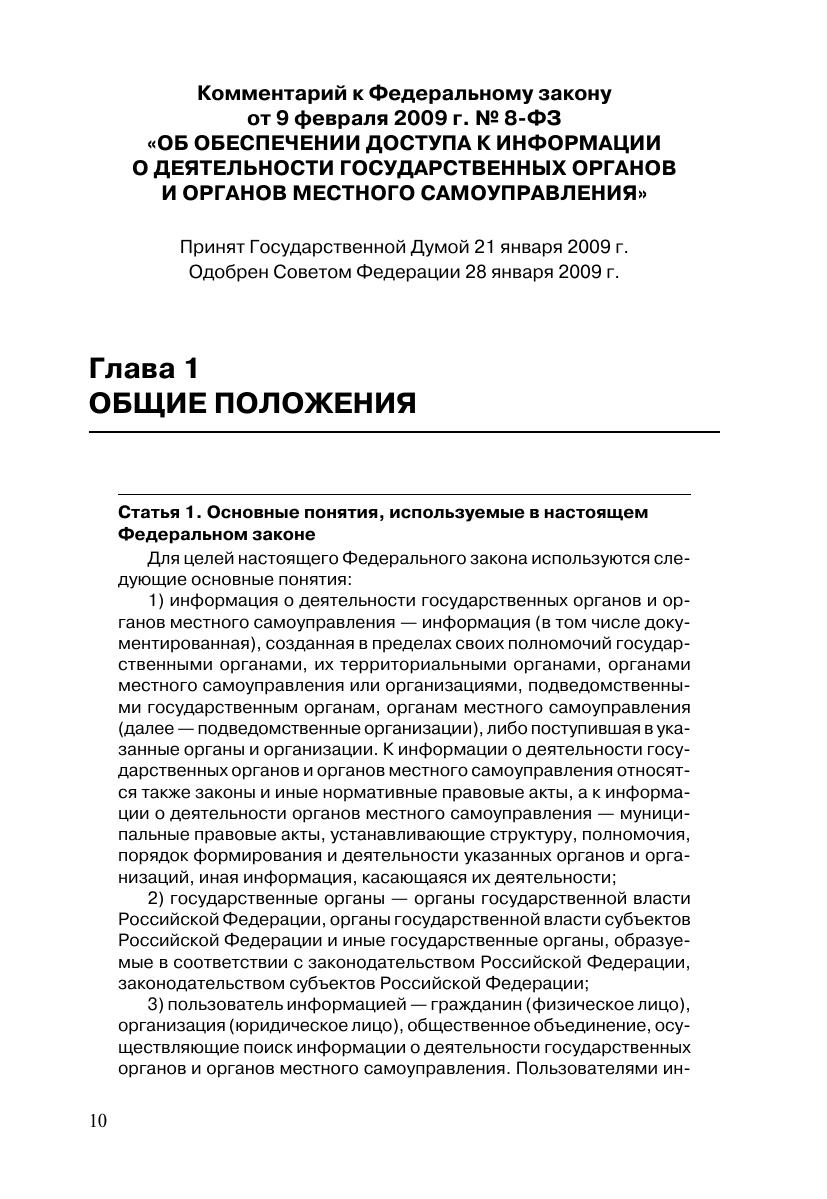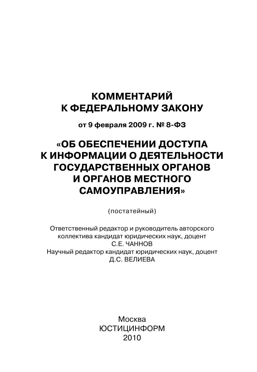 Комментарий к Федеральному закону от 9 февраля 2009 г. № 8-ФЗ «Об обеспечении доступа к информации о деятельности государственных органов и органов местного самоуправления» (постатейный)