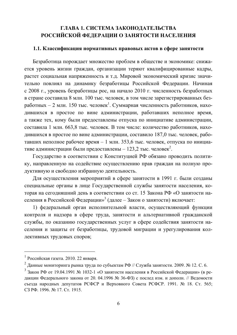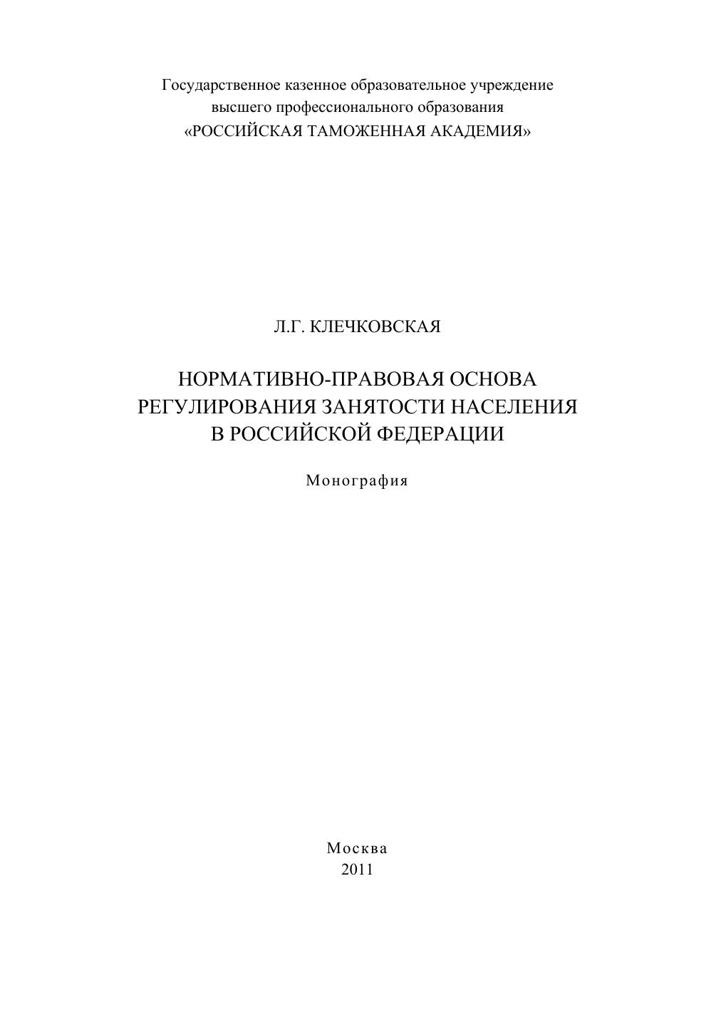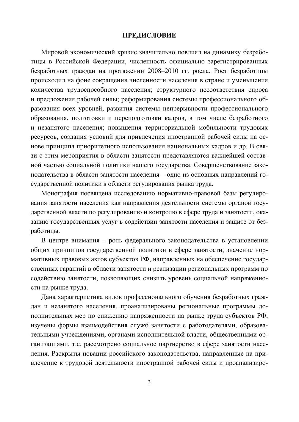 Нормативно-правовая основа регулирования занятости населения в РФ: монография