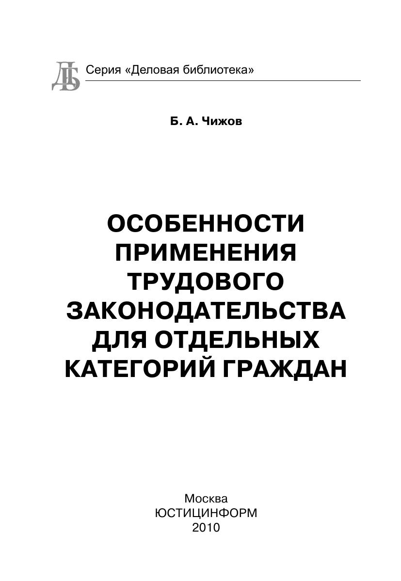 Особенности применения трудового законодательства для отдельных категорий граждан