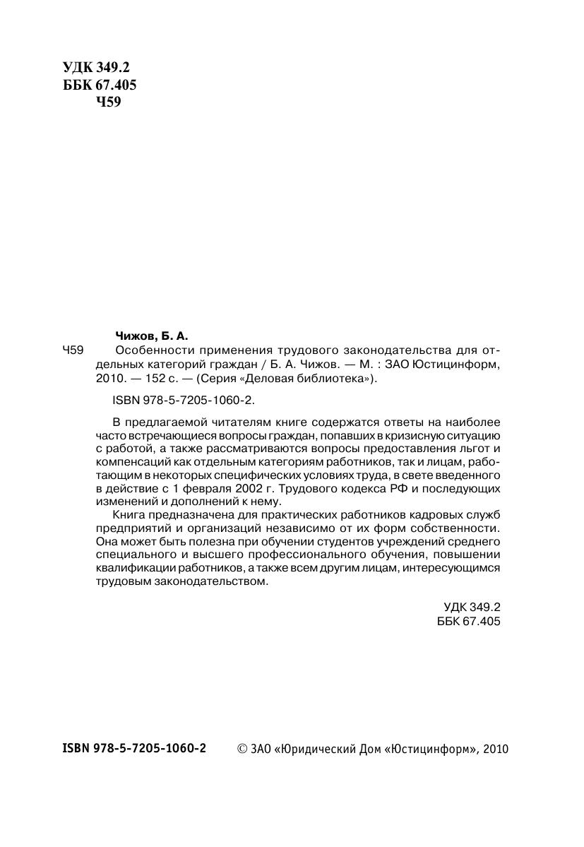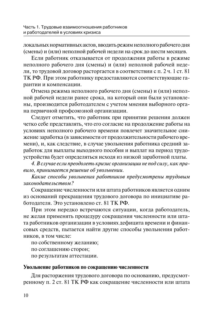 В предлагаемой читателям книге содержатся ответы на наиболее часто встречающиеся вопросы граждан, попавших в кризисную ситуацию с работой, а также рассматриваются вопросы предоставления льгот и компенсаций как отдельным категориям работников, так и лицам, работающим в некоторых специфических условиях труда, в свете введенного в действие с 1 февраля 2002 г. Трудового кодекса РФ и последующих изменений и дополнений к нему.Книга предназначена для практических работников кадровых служб предприятий и организаций независимо от их форм собственности. Она может быть полезна при обучении студентов учреждений среднего специального и высшего профессионального обучения, повышении квалификации работников, а также всем другим лицам, интересующимся трудовым законодательством.
