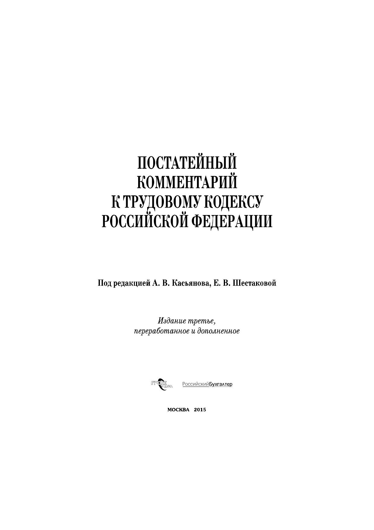 Постатейный комментарий к Трудовому кодексу Российской Федерации