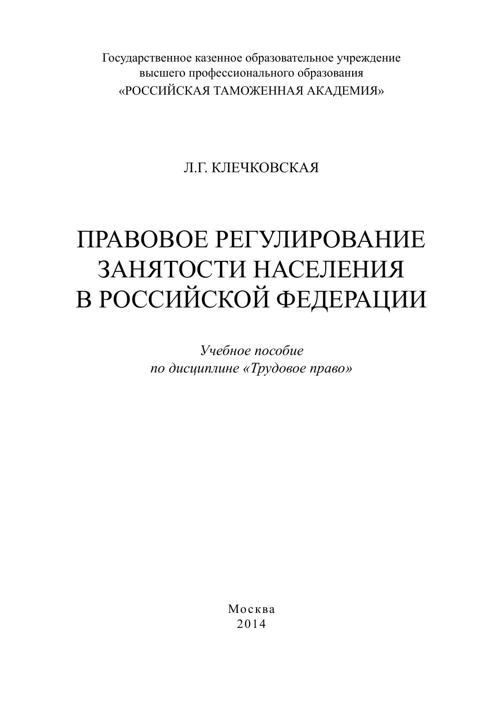Правовое регулирование занятости населения в Российской Федерации: учебное пособие