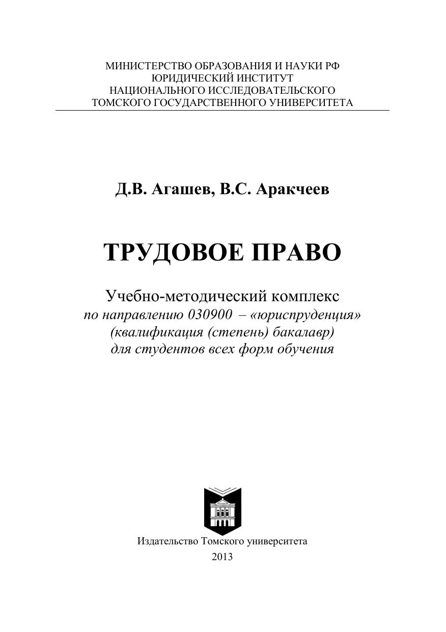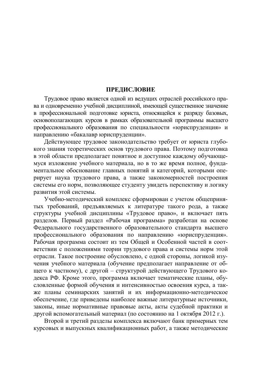 Учебно-методический комплекс по дисциплине «Трудовое право» разработан в соответствии с Федеральным государственным образовательным стандартом высшего профессионального образования по направлению 030900 – «юриспруденция» (квалификация (степень) бакалавр) и предназначен для подготовки студентов всех форм обучения. Он включает рабочую программу курса, тематические планы, планы семинарских занятий и их информационно-методическое обеспечение, где приведены наиболее важные литературные источники и другой вспомогательный материал, законы, иные нормативные правовые акты, банк примерных тем курсовых и выпускных квалификационных работ, методические указания по их выполнению, контрольные вопросы и тестовые задания, а также основные термины и определения. Для бакалавров, магистрантов, аспирантов, преподавателей юридических факультетов и вузов.