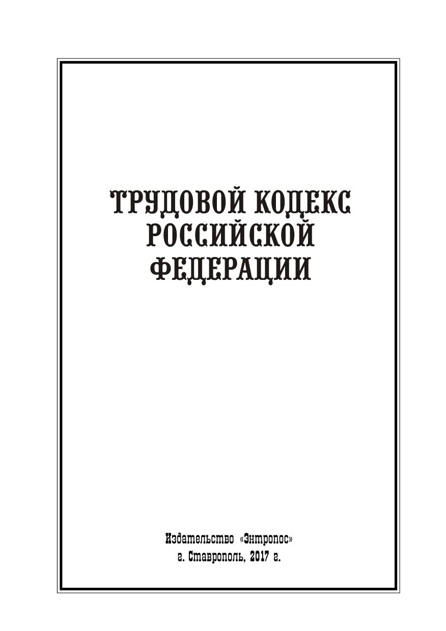 Трудовой кодекс Российской Федерации (с изменениями, вступающими в силу с 1-го сентября 2017 года)