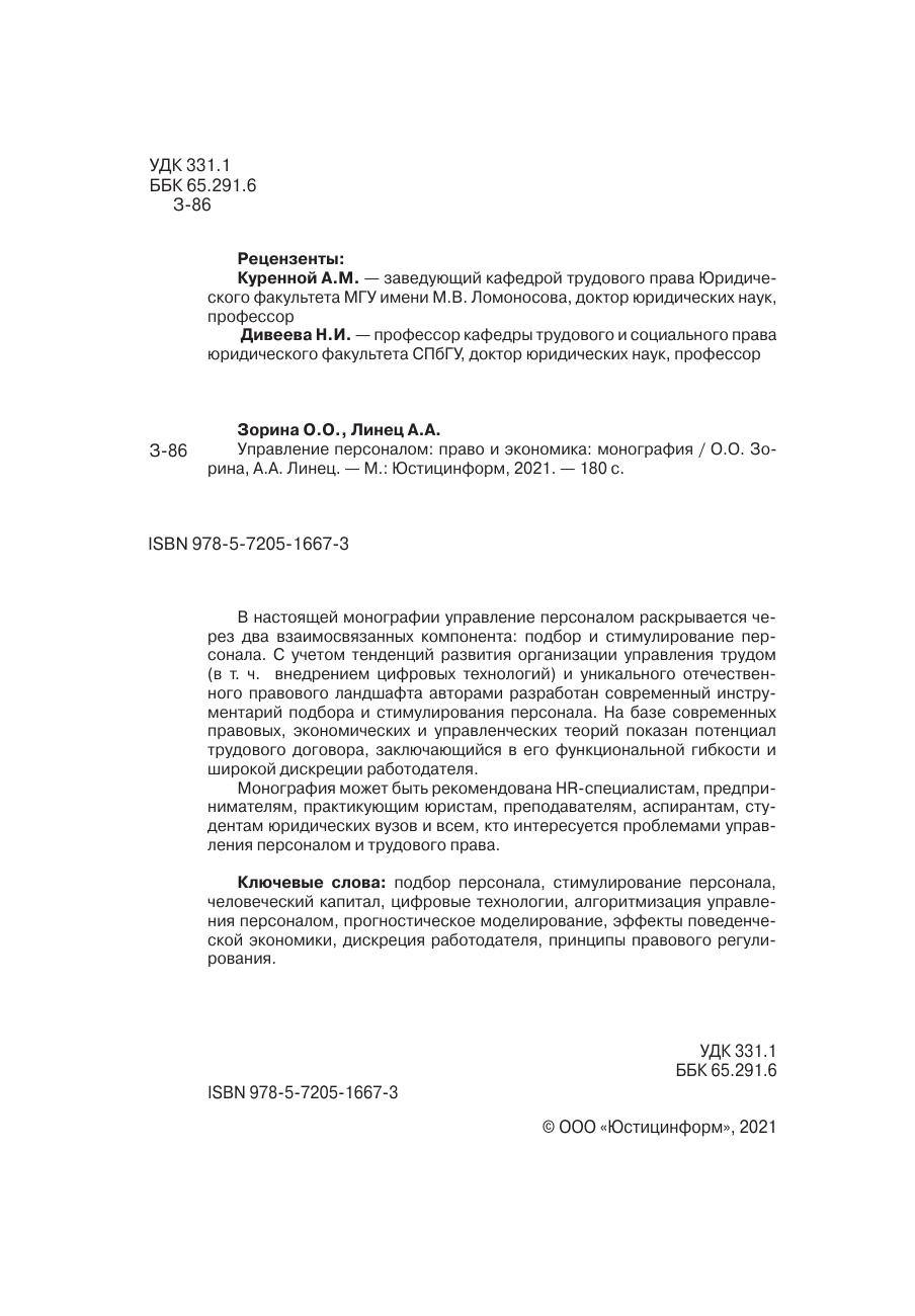 В настоящей монографии управление персоналом раскрывается через два взаимосвязанных компонента: подбор и стимулирование персонала. С учетом тенденций развития организации управления трудом (в т. ч. внедрением цифровых технологий) и уникального отечественного правового ландшафта авторами разработан современный инструментарий подбора и стимулирования персонала. На базе современных правовых, экономических и управленческих теорий показан потенциал трудового договора, заключающийся в его функциональной гибкости и широкой дискреции работодателя. Монография может быть рекомендована HR-специалистам, предпринимателям, практикующим юристам, преподавателям, аспирантам, студентам юридических вузов и всем, кто интересуется проблемами управления персоналом и трудового права.