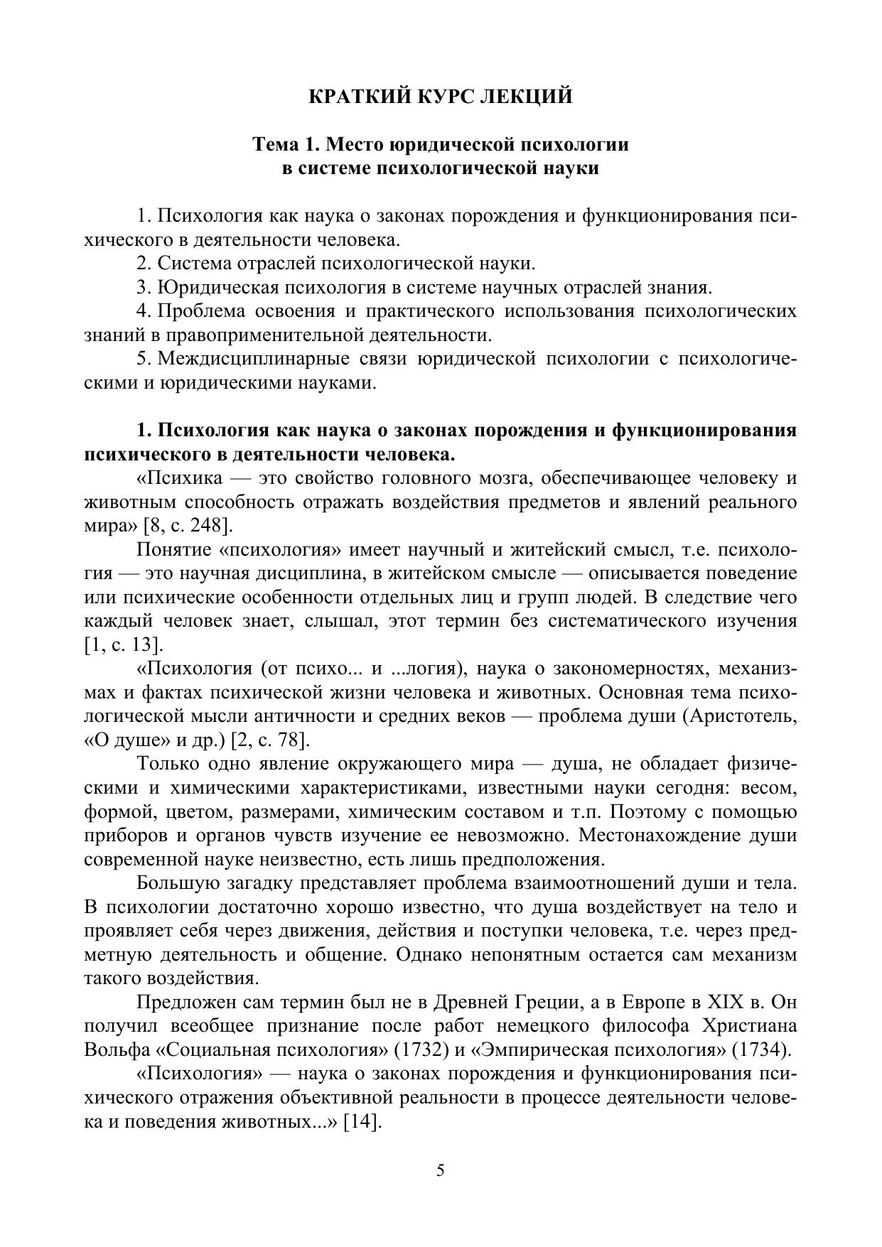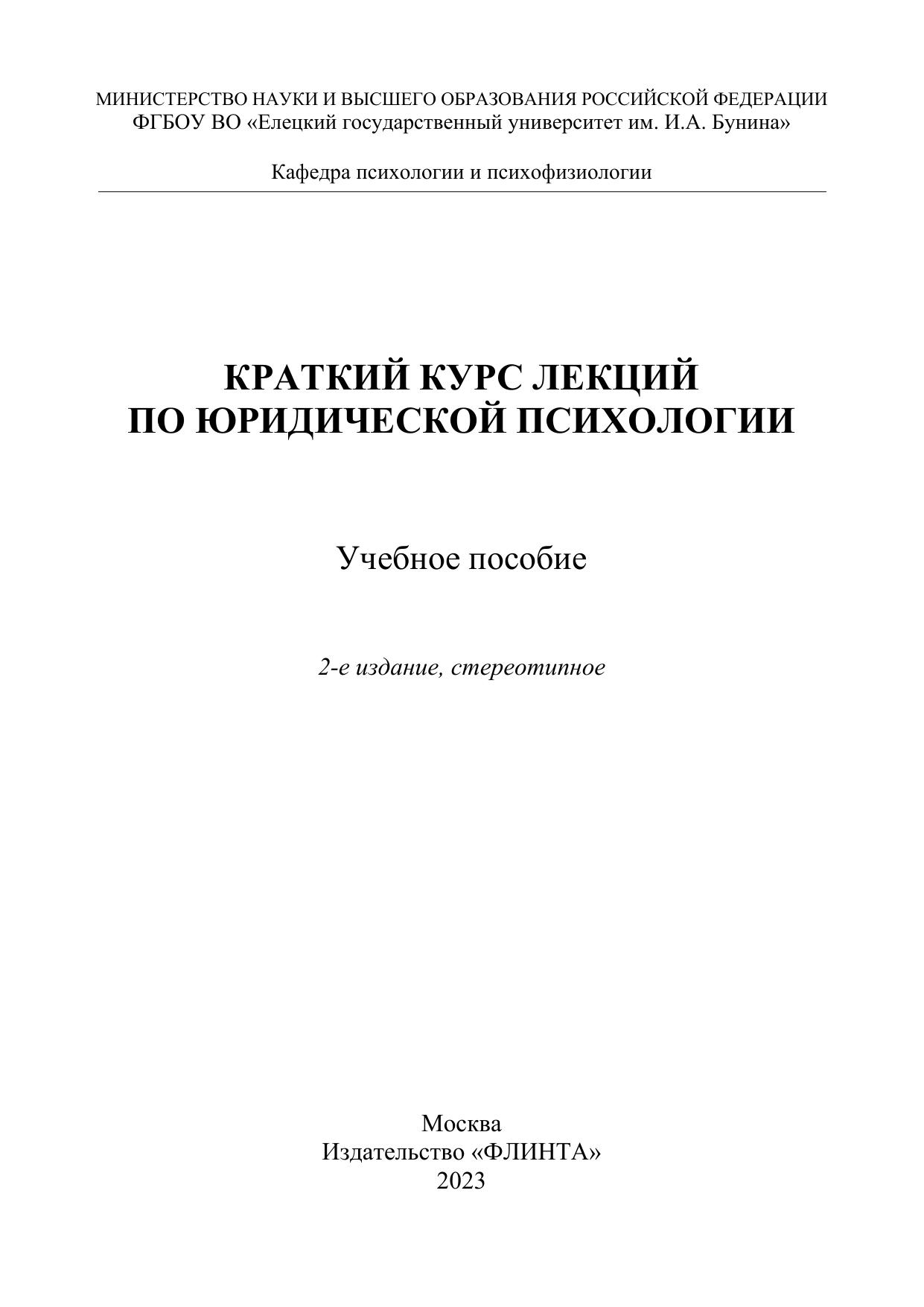 Краткий курс лекций по юридической психологии