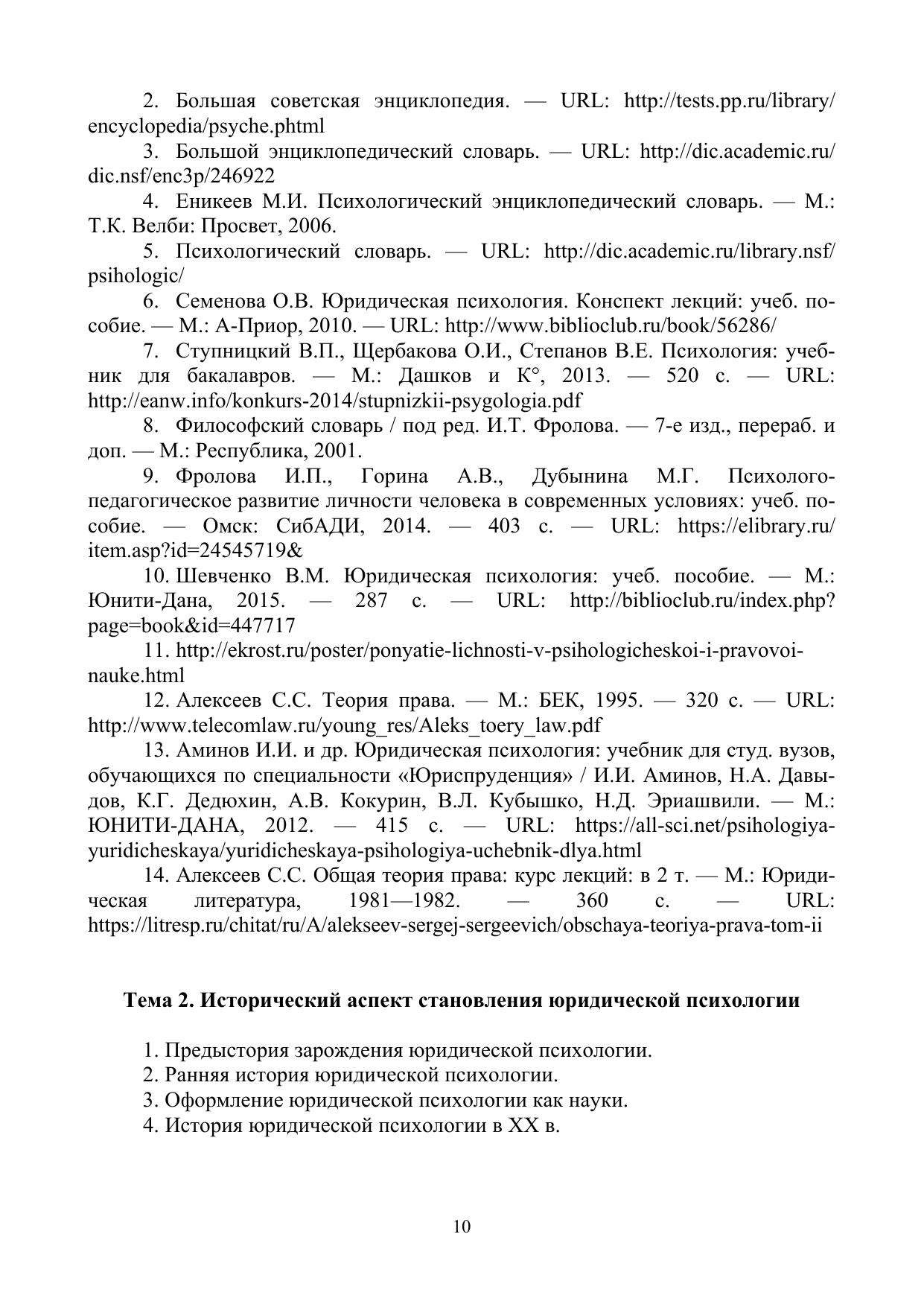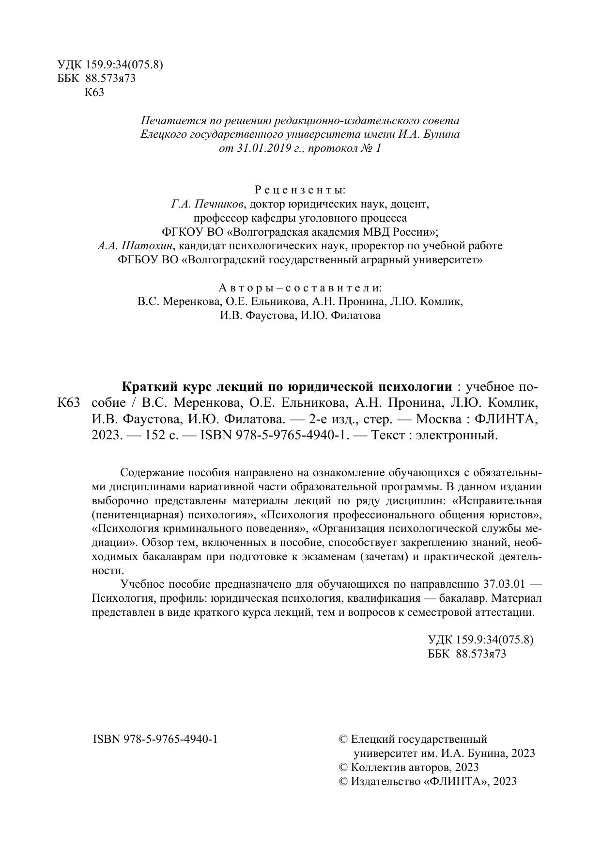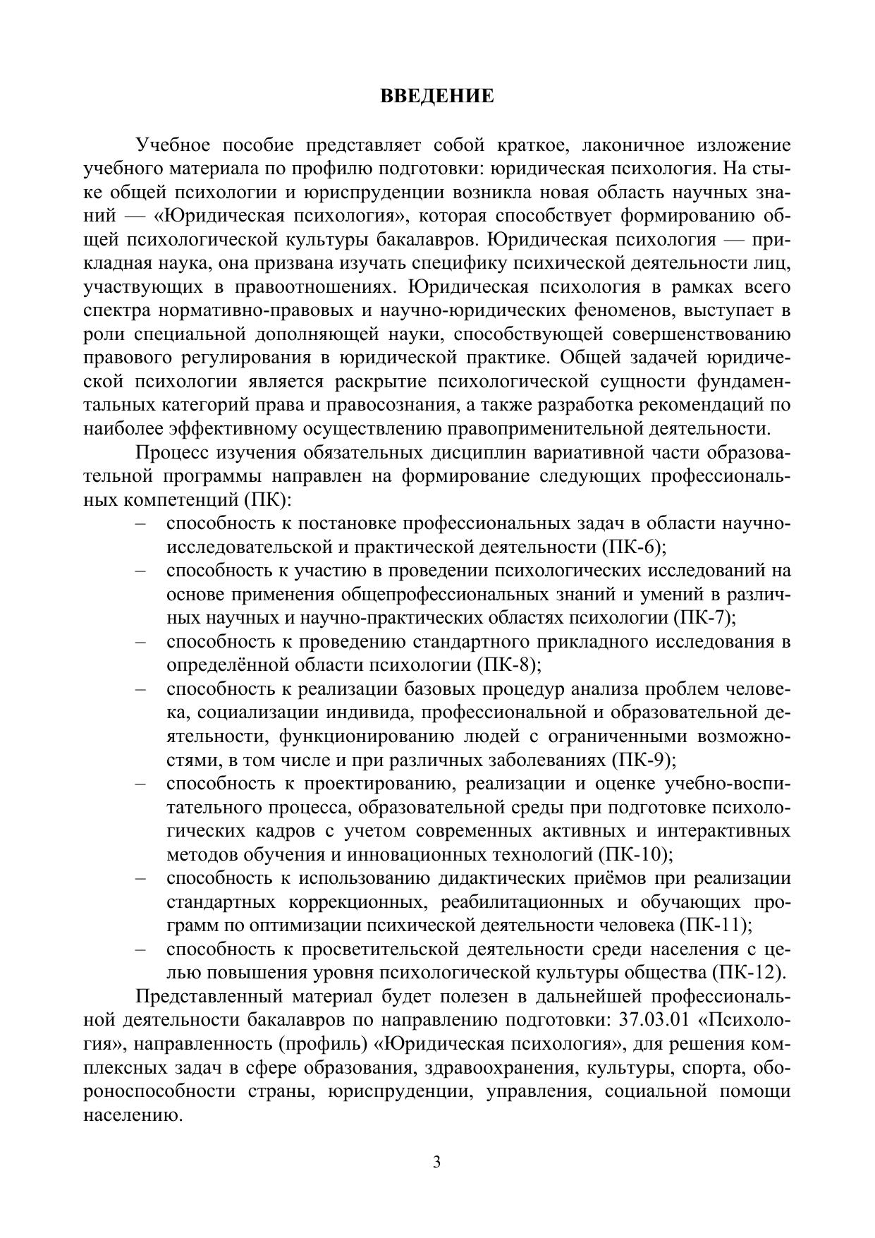 Учебное пособие предназначено для обучающихся по направлению 37.03.01 — Психология, профиль: юридическая психология, квалификация — бакалавр. Материал представлен в виде краткого курса лекций, тем и вопросов к семестровой аттестации.