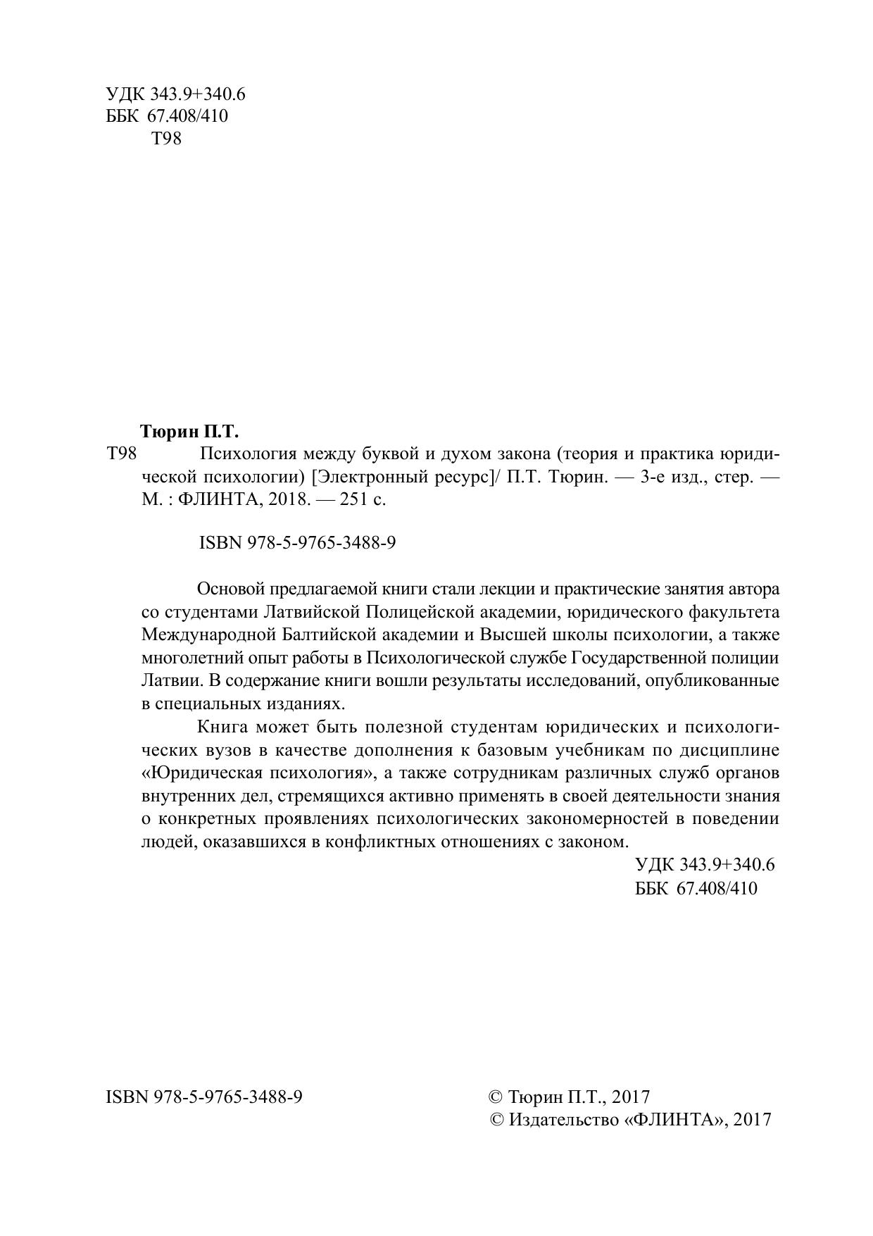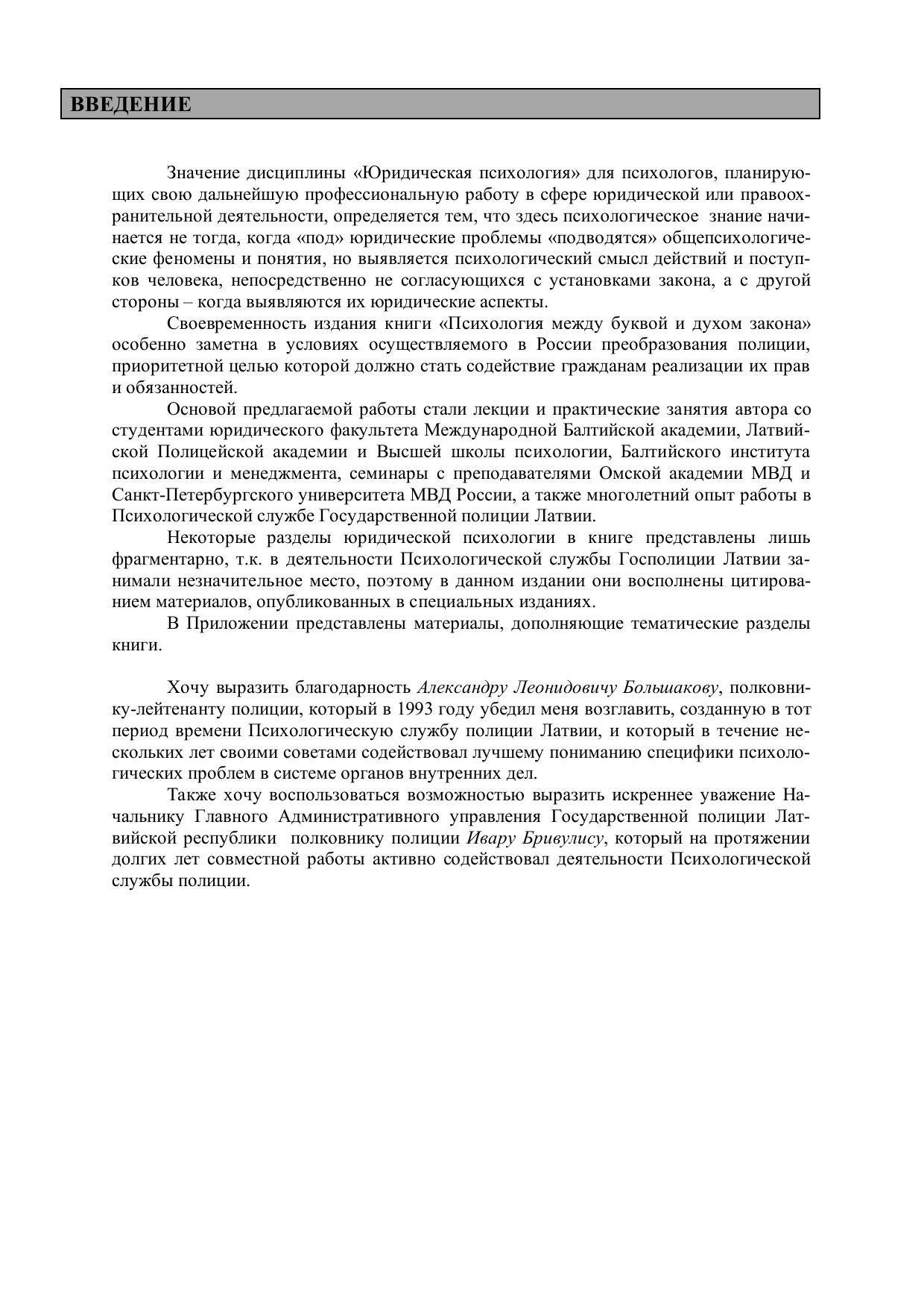 Основой предлагаемой книги стали лекции и практические занятия автора со студентами Латвийской Полицейской академии, юридического факультета Международной Балтийской академии и Высшей школы психологии, а также многолетний опыт работы в Психологической службе Государственной полиции Латвии. В содержание книги вошли результаты исследований, опубликованные в специальных изданиях. Книга может быть полезной студентам юридических и психологических вузов в качестве дополнения к базовым учебникам по дисциплине «Юридическая психология», а также сотрудникам различных служб органов