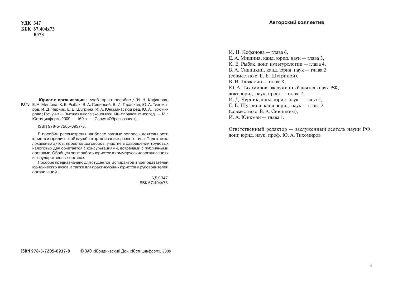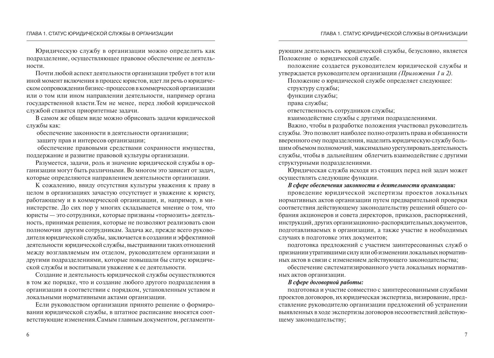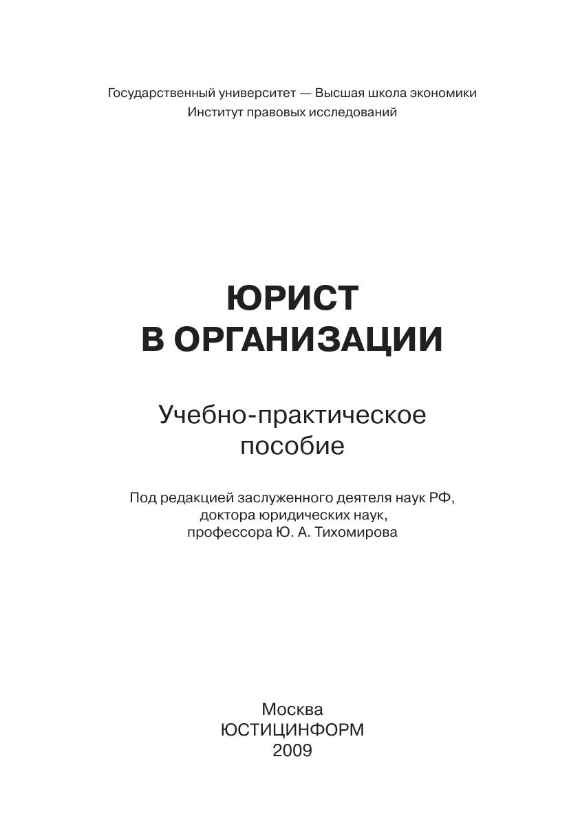 В пособии рассмотрены наиболее важные вопросы деятельности юриста и юридической службы в организациях разного типа. Подготовка локальных актов, проектов договоров, участие в разрешении трудовых налоговых дел сочетается с консультациями, встречами с публичными органами. Обобщен опыт работы юристов в коммерческих организациях и государственных органах. Пособие предназначено для студентов, аспирантов и преподавателей юридических вузов, а также для практикующих юристов и руководителей организаций.