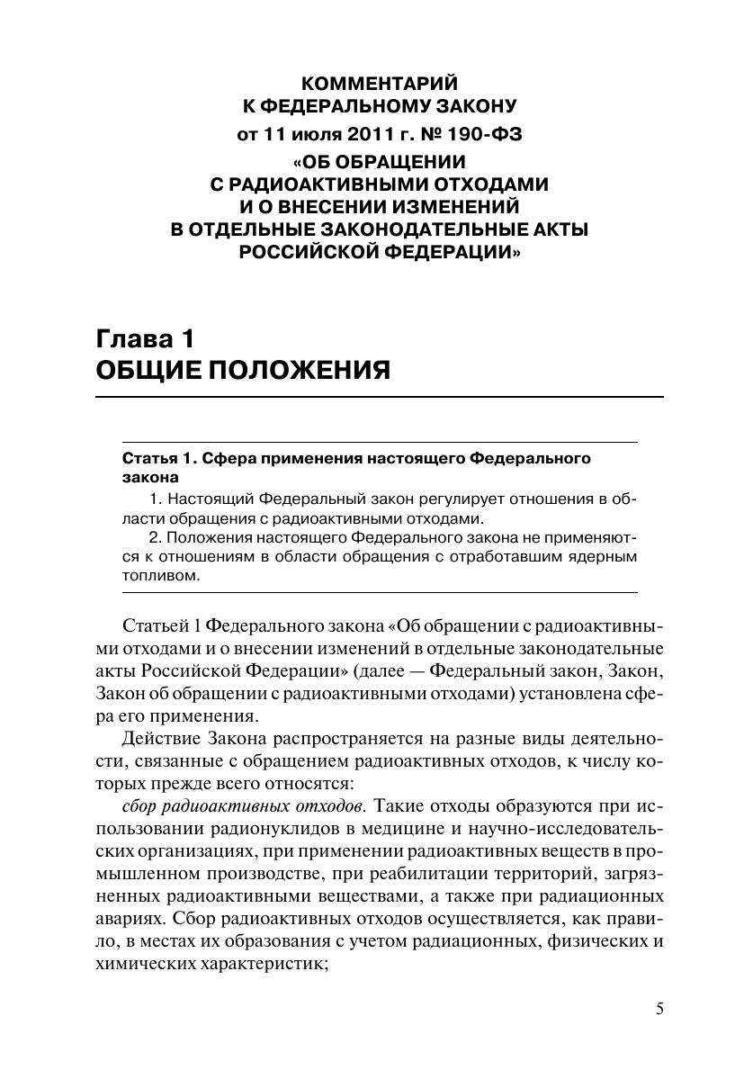 Комментарий к Федеральному закону от 11 июля 2011 г. № 190-ФЗ «Об обращении с радиоактивными отходами и о внесении изменений в отдельные законодательные акты Российской Федерации» (постатейный)