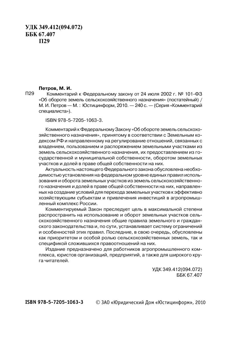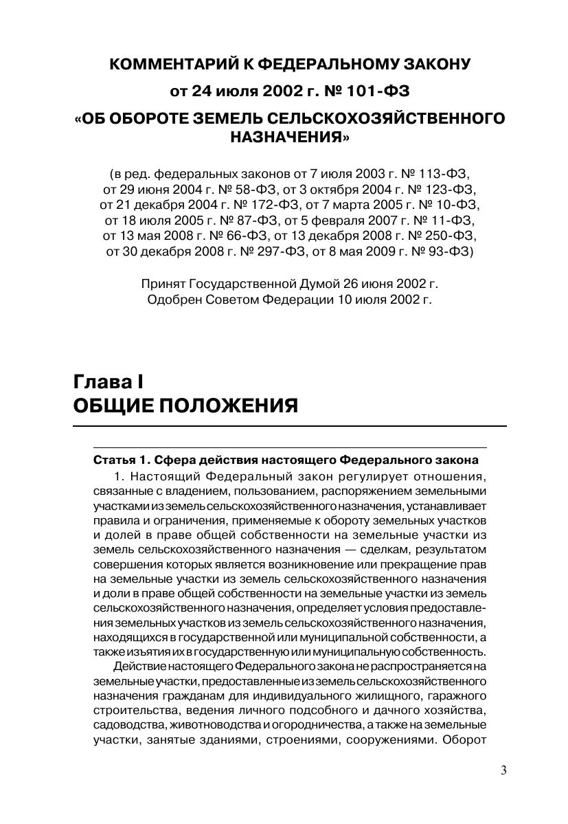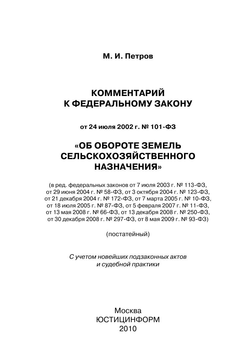 Комментарий к Федеральному закону от 24 июля 2002 г. № 101-ФЗ «Об обороте земель сельскохозяйственного назначения» (постатейный)