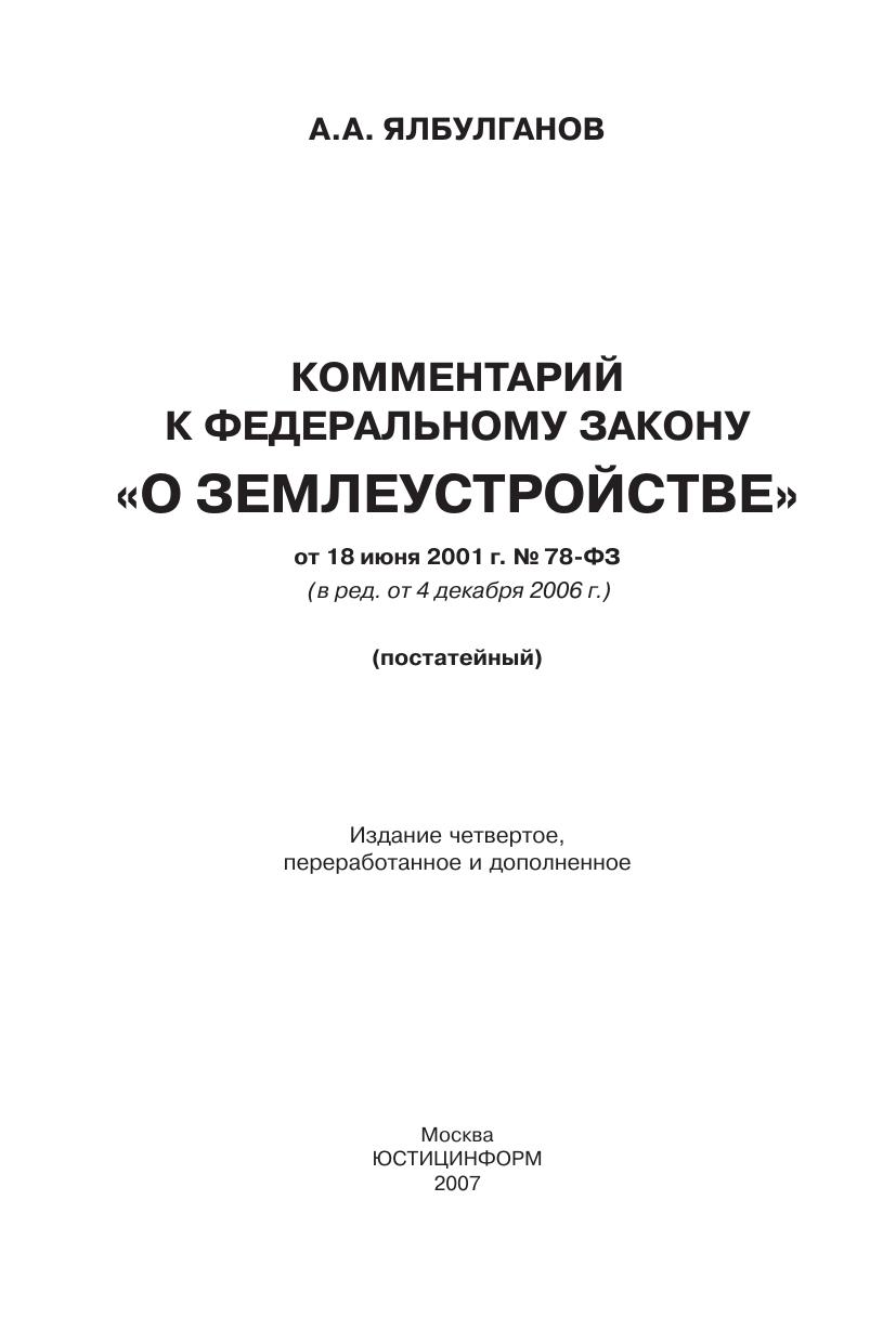Комментарий к Федеральному закону о землеустройстве (постатейный)