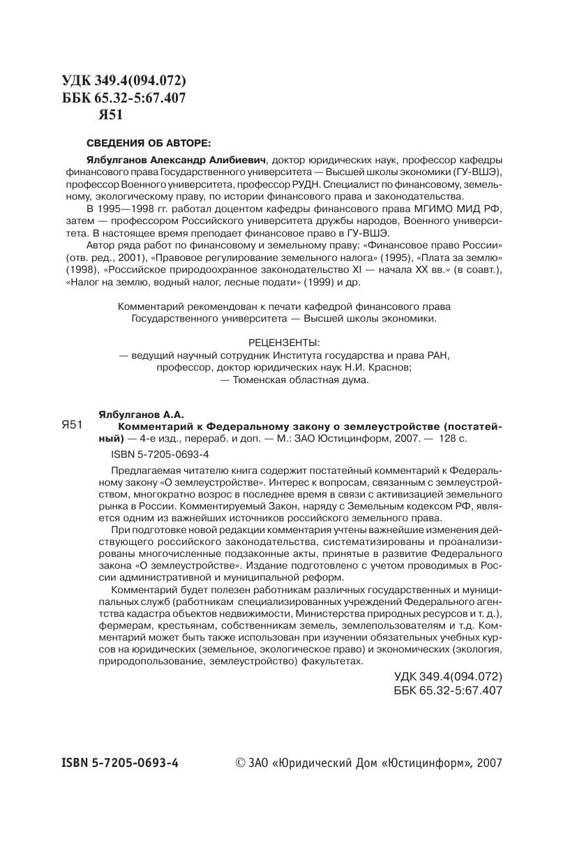 Предлагаемая читателю книга содержит постатейный комментарий к Федеральному закону «О землеустройстве». Интерес к вопросам, связанным с землеустройством, многократно возрос в последнее время в связи с активизацией земельного рынка в России. Комментируемый Закон, наряду с Земельным кодексом РФ, является одним из важнейших источников российского земельного права.При подготовке новой редакции комментария учтены важнейшие изменения действующего российского законодательства, систематизированы и проанализированы многочисленные подзаконные акты, принятые в развитие Федерального закона «О землеустройстве». Издание подготовлено с учетом проводимых в России административной и муниципальной реформ.