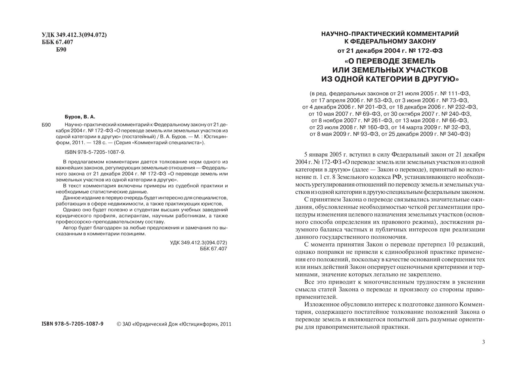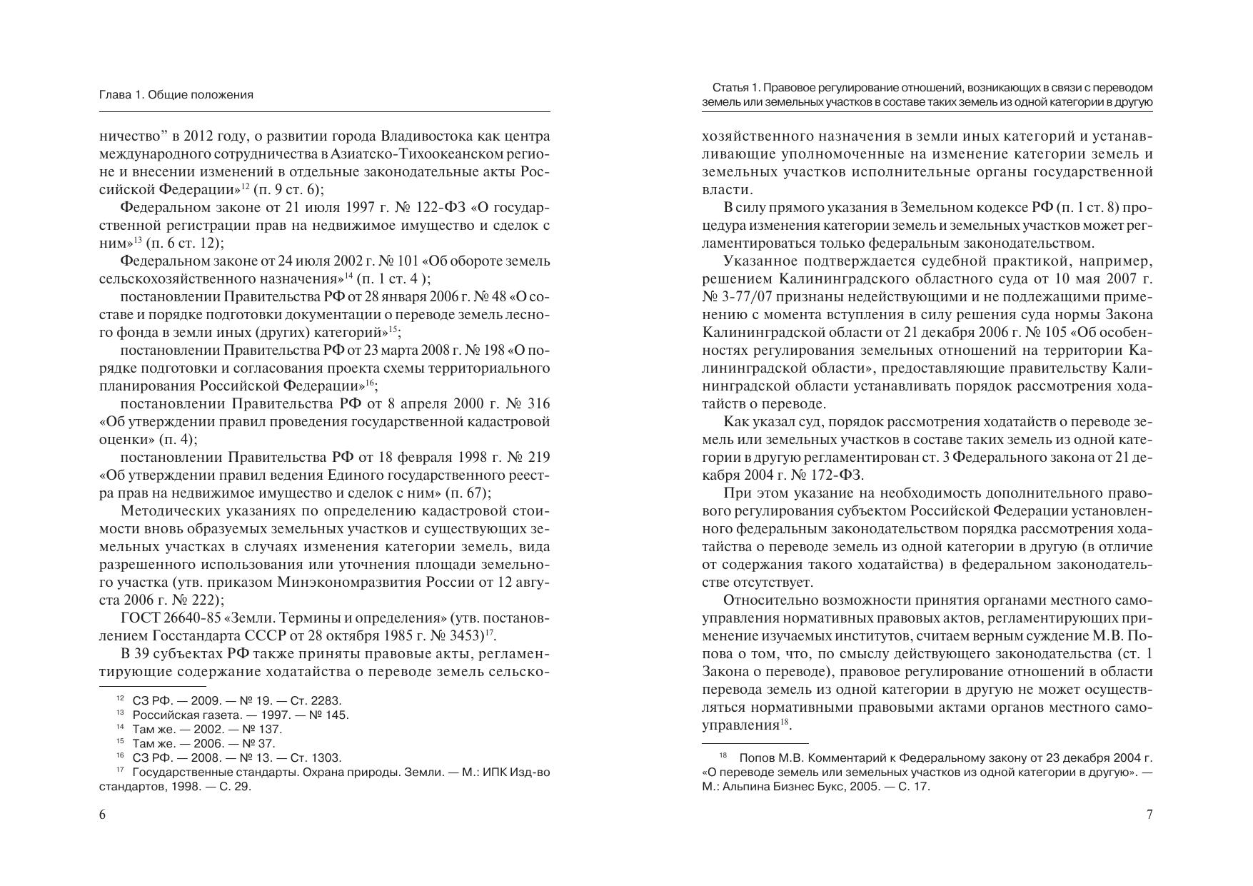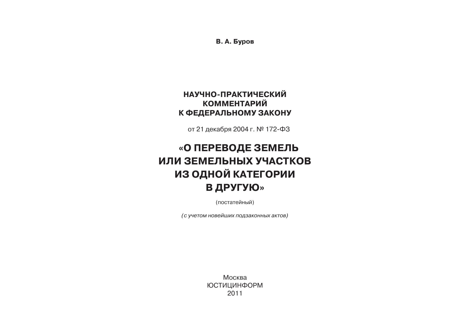 Научно-практический комментарий к Федеральному закону от 21 декабря 2004 г. № 172-ФЗ «О переводе земель или земельных участков из одной категории в другую» (постатейный)