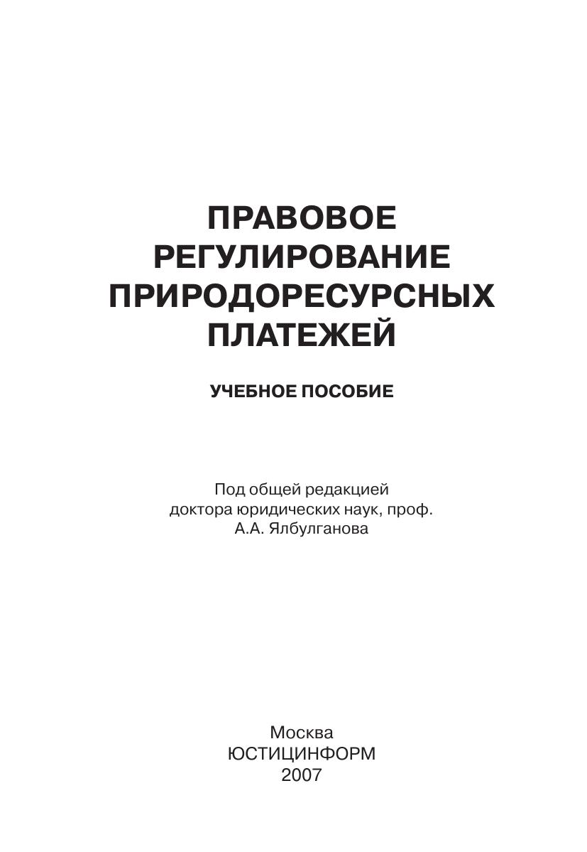 Правовое регулирование природоресурсных платежей: Учебное пособие