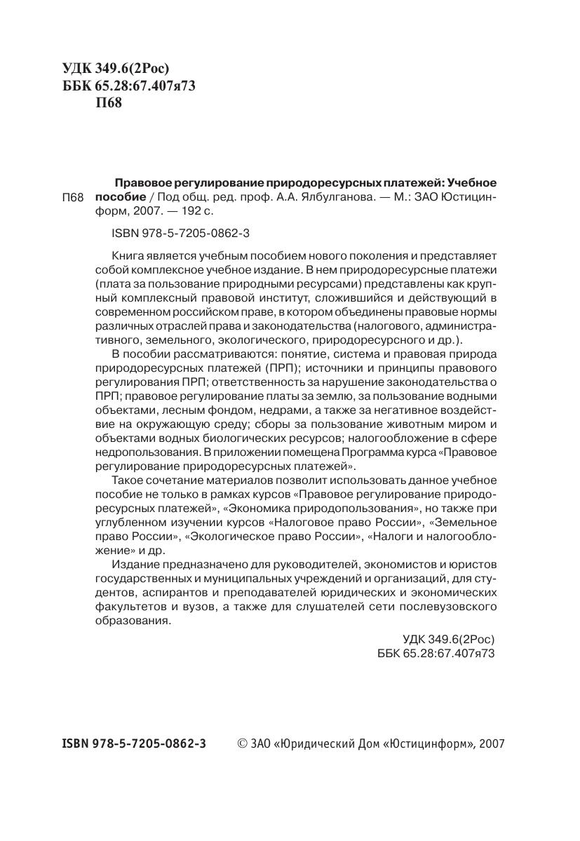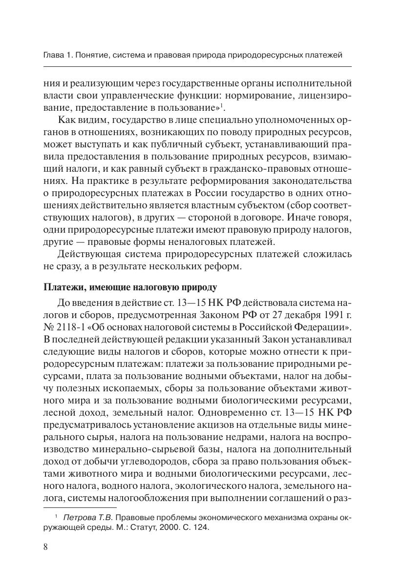 Книга является учебным пособием нового поколения и представляет собой комплексное учебное издание. В нем природоресурсные платежи (плата за пользование природными ресурсами) представлены как крупный комплексный правовой институт, сложившийся и действующий в современном российском праве, в котором объединены правовые нормы различных отраслей права и законодательства (налогового, административного, земельного, экологического, природоресурсного и др.).В пособии рассматриваются: понятие, система и правовая природа природоресурсных платежей (ПРП) источники и принципы правового регулирования ПРП ответственность за нарушение законодательства о ПРП правовое регулирование платы за землю, за пользование водными объектами, лесным фондом, недрами, а также за негативное воздействие на окружающую среду сборы за пользование животным миром и объектами водных биологических ресурсов налогообложение в сфере недропользования. В приложении помещена Программа курса «Правовое регулирование природоресурсных платежей». Такое сочетание материалов позволит использовать данное учебное пособие не только в рамках курсов «Правовое регулирование природоресурсных платежей», «Экономика природопользования», но также при углубленном изучении курсов «Налоговое право России», «Земельное право России», «Экологическое право России», «Налоги и налогообложение» и др.Издание предназначено для руководителей, экономистов и юристов государственных и муниципальных учреждений и организаций, для студентов, аспирантов и преподавателей юридических и экономических факультетов и вузов, а также для слушателей сети послевузовского образования.