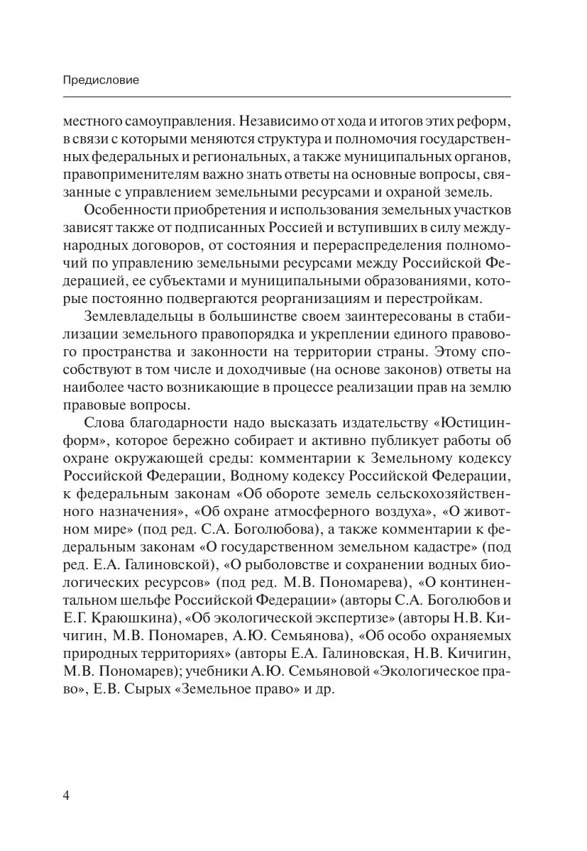 Настоящее издание «Земельный участок: вопросы и ответы» служит дополнением к Земельному кодексу Российской Федерации и его многочисленным комментариям. В книге рассматриваются наиболее часто встречающиеся в жизни ситуации, с разъяснениями ведущих ученых и практиков, специалистов в области регулирования земельных отношений. Особое внимание уделяется правам физических и юридических лиц (собственников, владельцев, пользователей, арендаторов) на земельные участки, преемственности всех землеобладателей в настоящее время, тому новому, что вносится принятыми в последнее время законами в российскую правовую систему.Полезно описание порядка учета и регистрации земельных участков, обеспечения стабильности пользования и владения недвижимостью на земле. Важны пределы вмешательства государства, обязанности в области охраны и использования земель.Издание предназначено для физических и юридических лиц — землеобладателей, землеустроителей, муниципальных и государственных служащих, юристов, студентов и аспирантов юридических и сельскохозяйственных вузов.