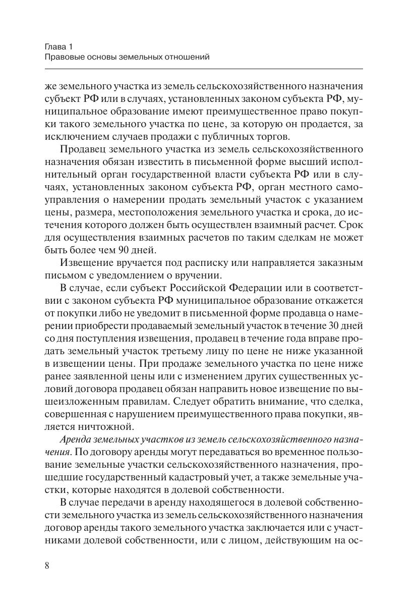 Настоящий справочник является практическим пособием для всех собственников и арендаторов земельных участков, призванным помочь в решении сложных земельных вопросов. В книге разъясняются правовые основы земельных отношений, права и обязанности собственника и арендатора земли. Особое внимание уделено сделкам с земельными участками: купле-продаже, аренде и ипотеке, разъясняются особенности законного оборота, изъятия из оборота и ограничения в обороте земельных участков. Отдельная глава посвяшена современной российской судебной практике по земельным спорам.Справочник предназначен для частных предпринимателей, коммерческих организаций и бизнес-структур, органов государственной власти и управления для студентов, аспирантов и преподавателей юридических вузов и факультетов, а также для всех, кто интересуется вопросами земельного права.