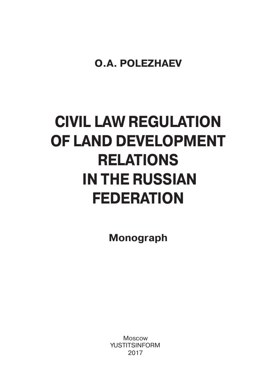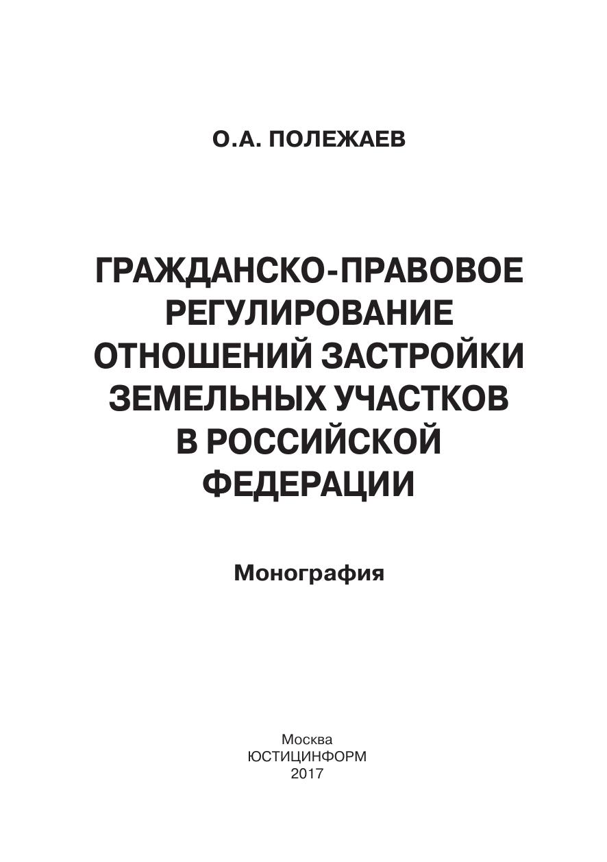 Гражданско-правовое регулирование отношений застройки земельных участков в Российской Федерации: монография
