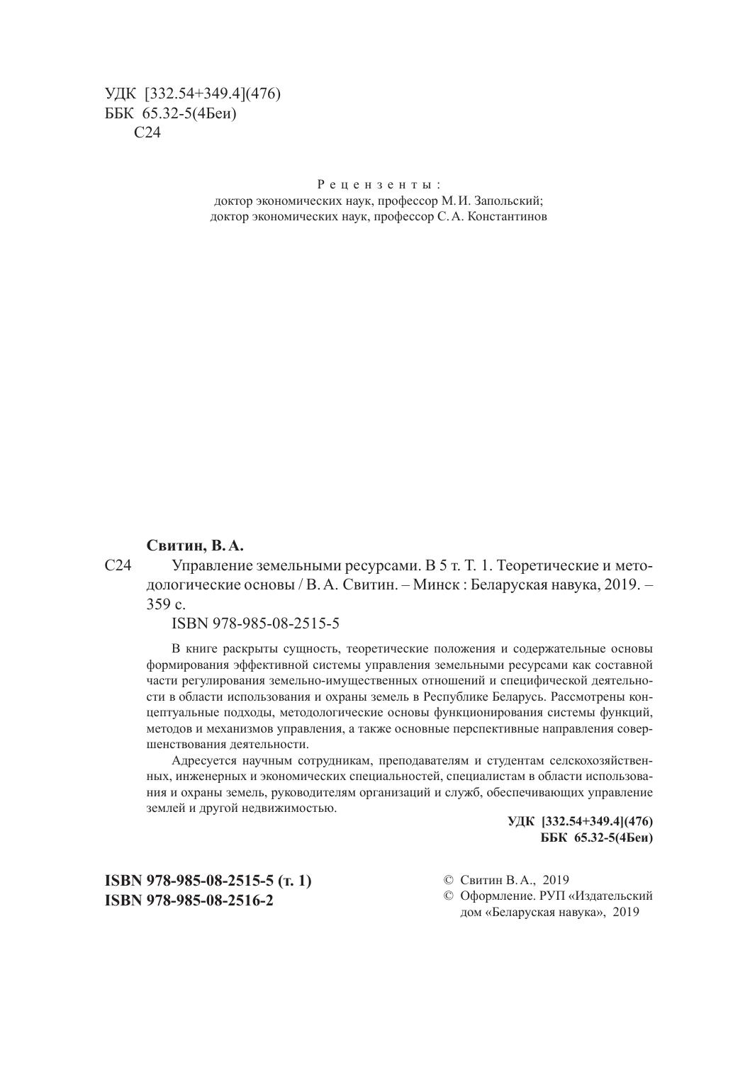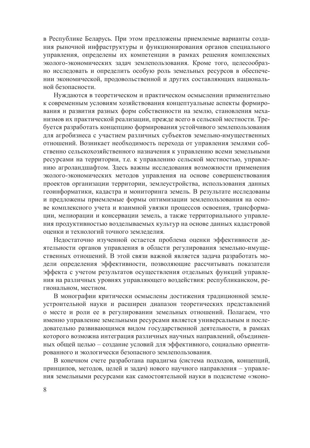 В книге раскрыты сущность, теоретические положения и содержательные основы формирования эффективной системы управления земельными ресурсами как составной части регулирования земельно-имущественных отношений и специфической деятельности в области использования и охраны земель в Республике Беларусь. Рассмотрены концептуальные подходы, методологические основы функционирования системы функций, методов и механизмов управления, а также основные перспективные направления совершенствования деятельности. Адресуется научным сотрудникам, преподавателям и студентам селскохозяйственных, инженерных и экономических специальностей, специалистам в области использования и охраны земель, руководителям организаций и служб, обеспечивающих управление землей и другой недвижимостью.
