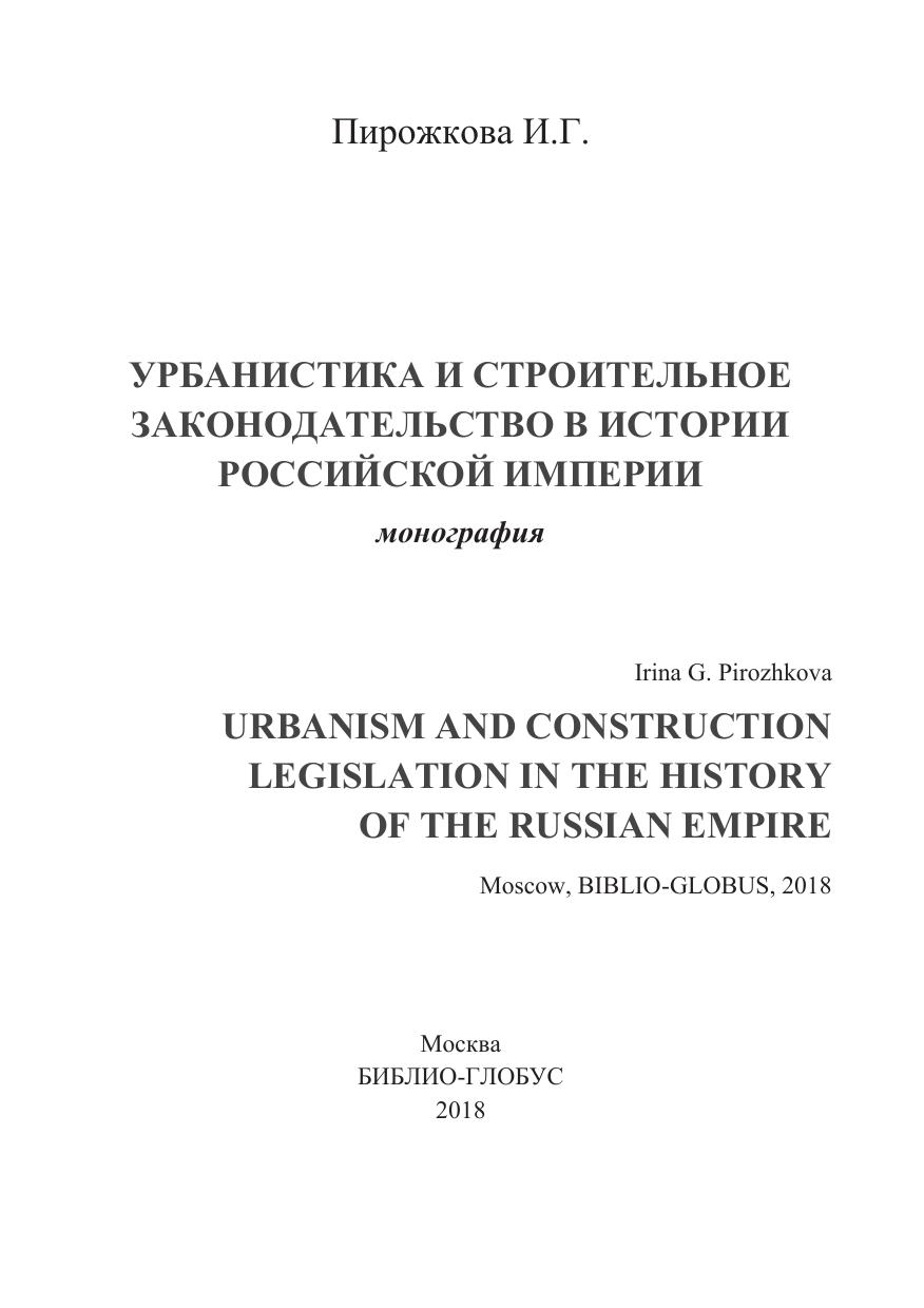Урбанистика и строительное законодательство в истории Российской империи: монография